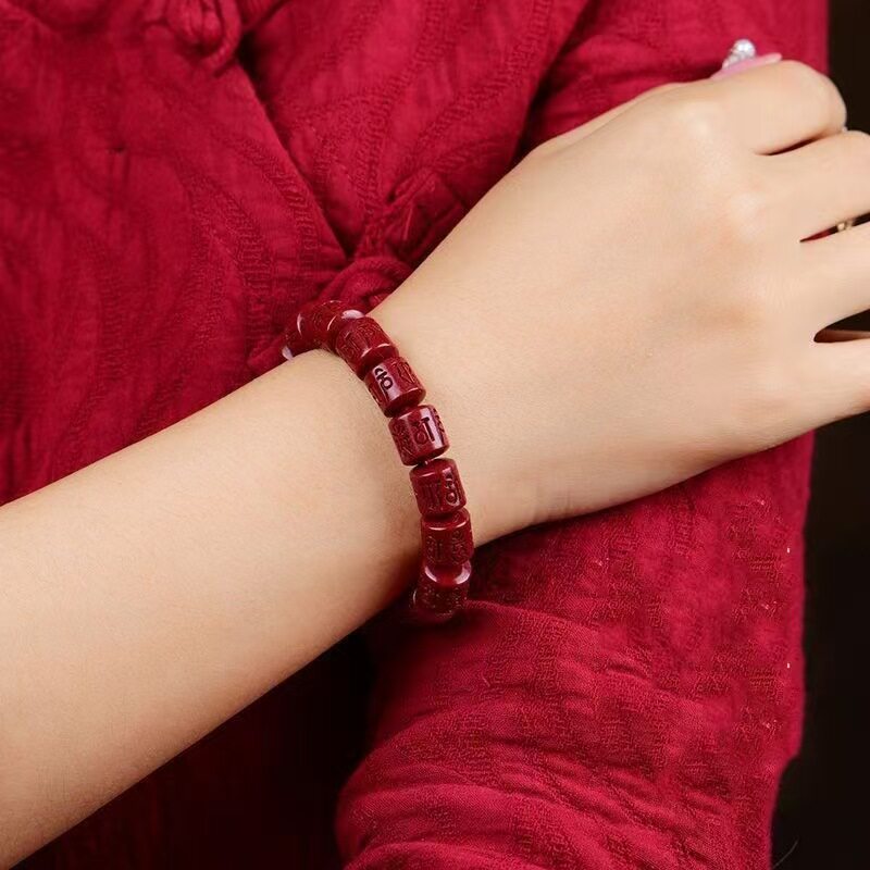 朱砂六字箴言手链男女士本命年手串念珠单圈护身佛珠情侣精致手串