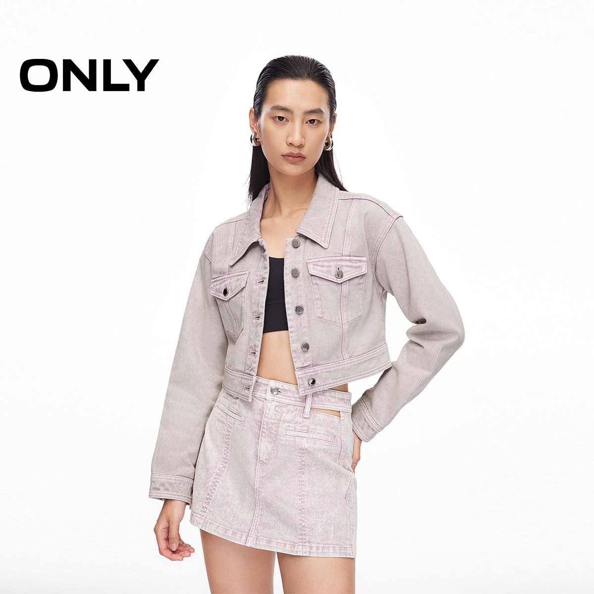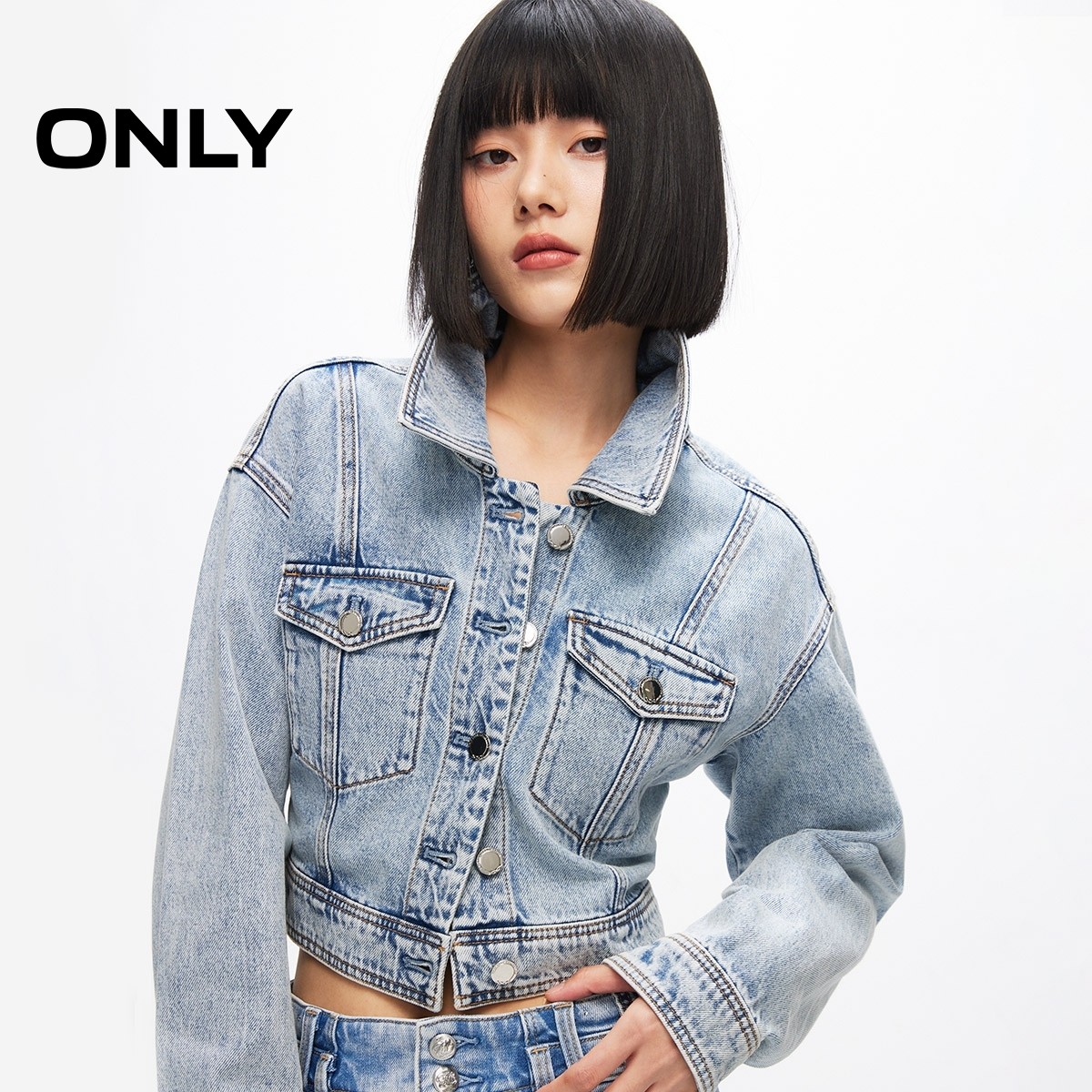 【ONLY奥莱】秋冬时尚休闲百搭做旧水洗短款牛仔外套女
