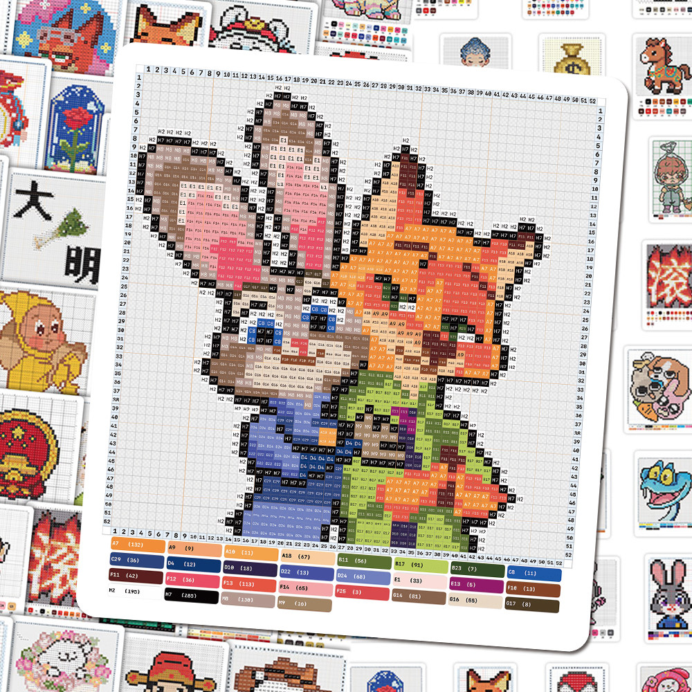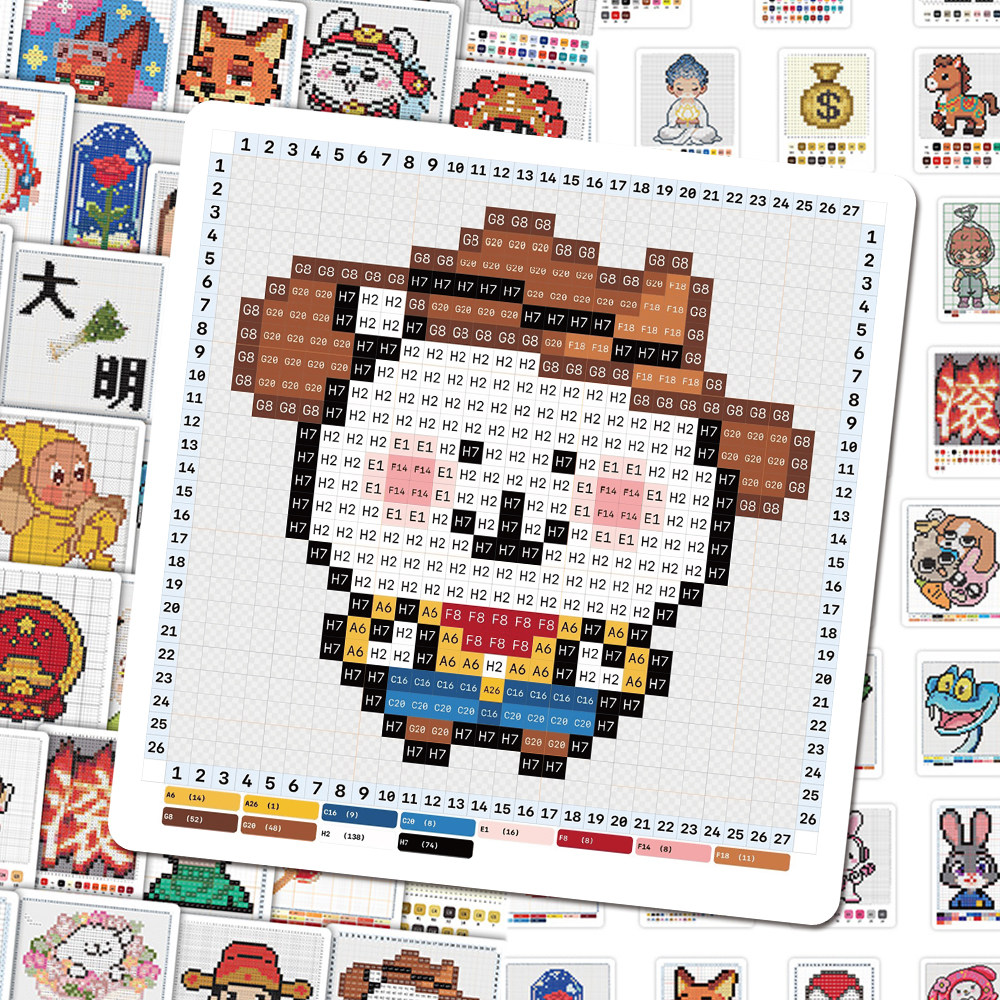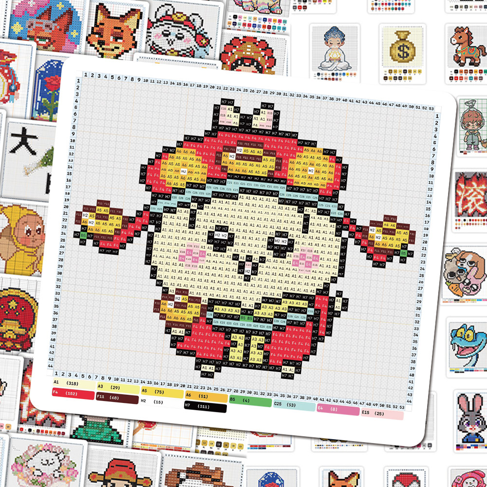 126张像素拼豆图纸贴纸热门手工创意趣味卡通人物图案diy桌面贴画