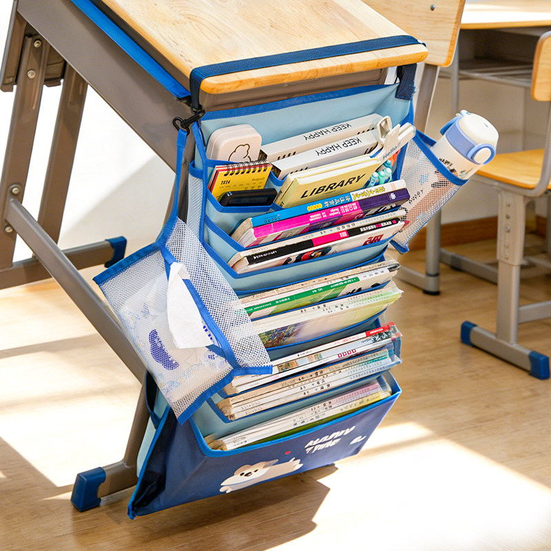 高中生课桌收纳袋挂袋学生桌边悬挂式书袋加厚课本分区置物袋初中生教室好物
