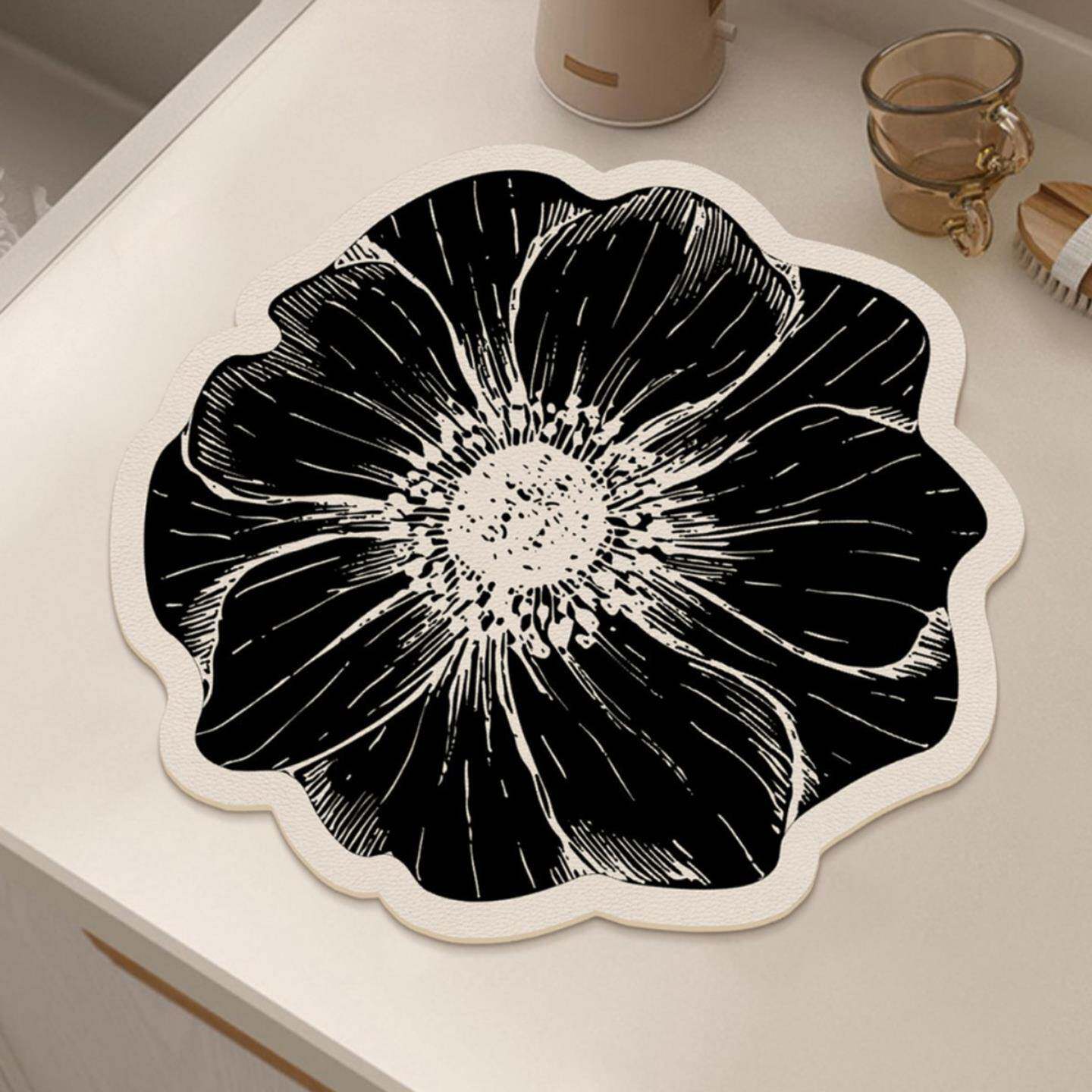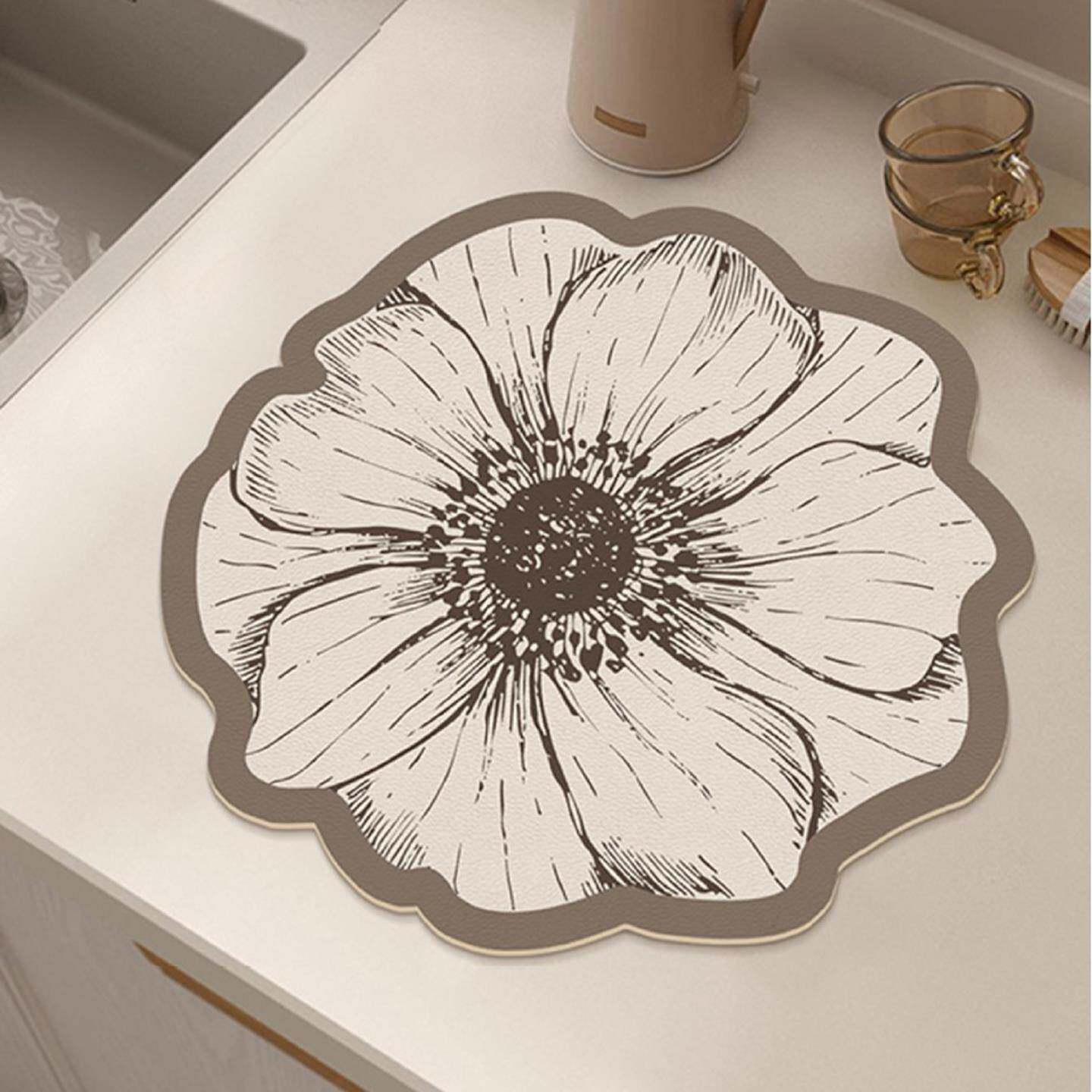 高品质耐脏餐垫花朵硅藻泥沥水垫家用厨房台面吸水碗盘防滑控水垫