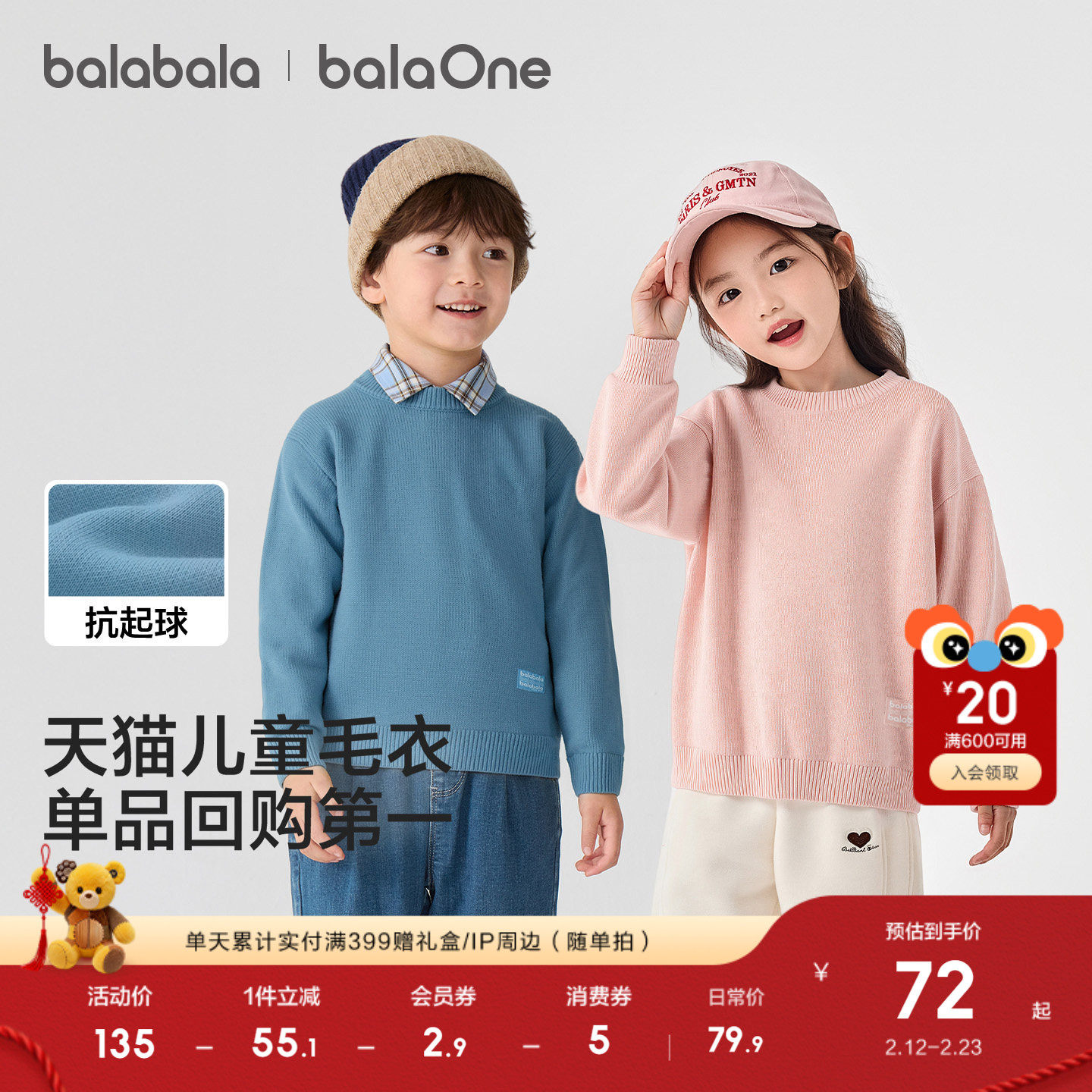 巴拉巴拉童装儿童毛衣男童女童2025新款秋冬宝宝套头毛衫针织打底