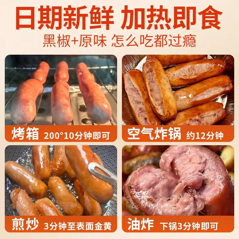皇家小虎火山石烤肠纯烤肉肠香肠热狗地道肠黑椒脆皮空气炸锅食材