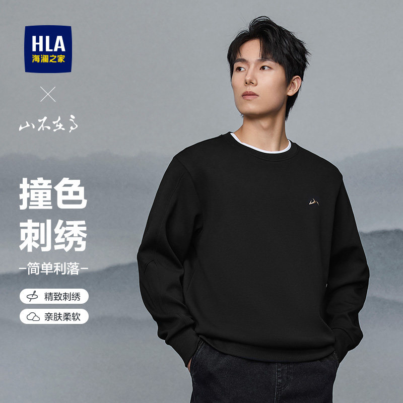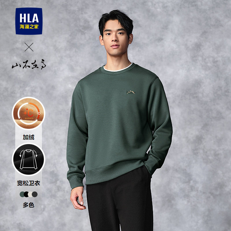 HLA/海澜之家山不在高系列卫衣春秋新圆领珠地小标宽松时尚上衣男