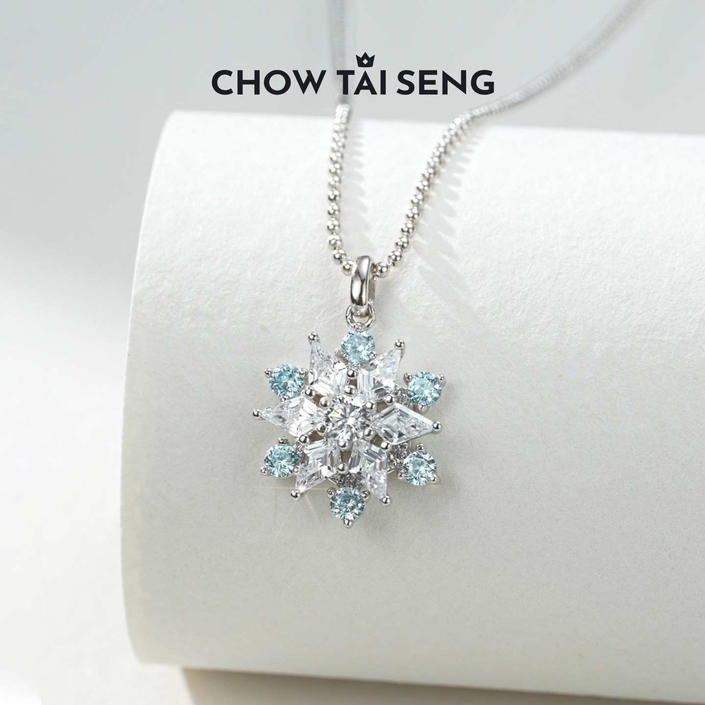【周大生专场】S925纯银雪花项链女吊坠轻奢高级感锁骨链新年礼物