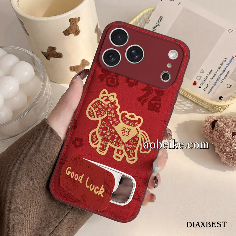 马上发财适用于苹果17promax手机壳iPhone16Pro新年款ip15plus秋冬鼓包iP14镜子支架13/12全包防摔11女保护套