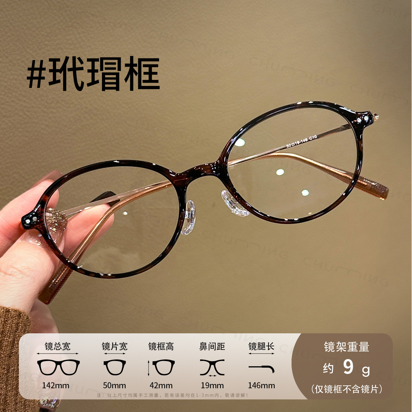 超轻钛架书呆子小框眼镜女近视可配度数高级感显瘦椭圆防蓝光眼睛