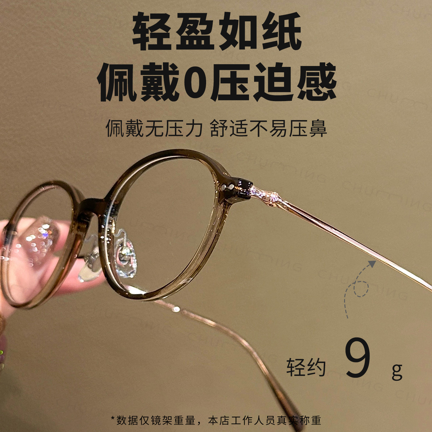纯钛圆框近视眼镜蔡司防蓝光女可配度数素颜文艺细边眼镜框镜架男
