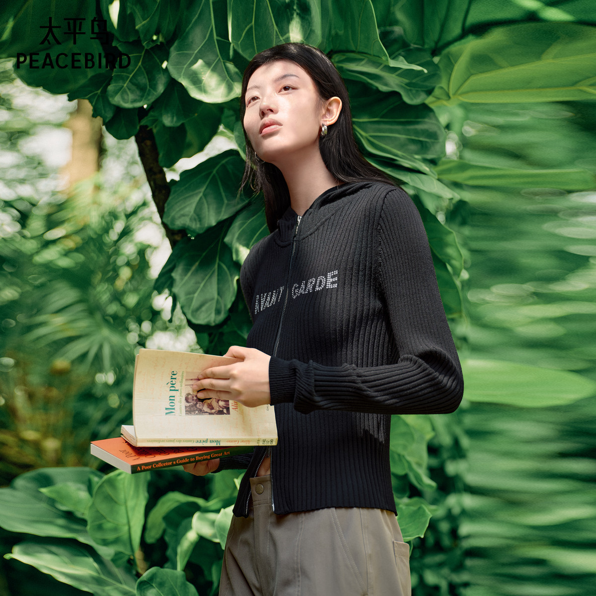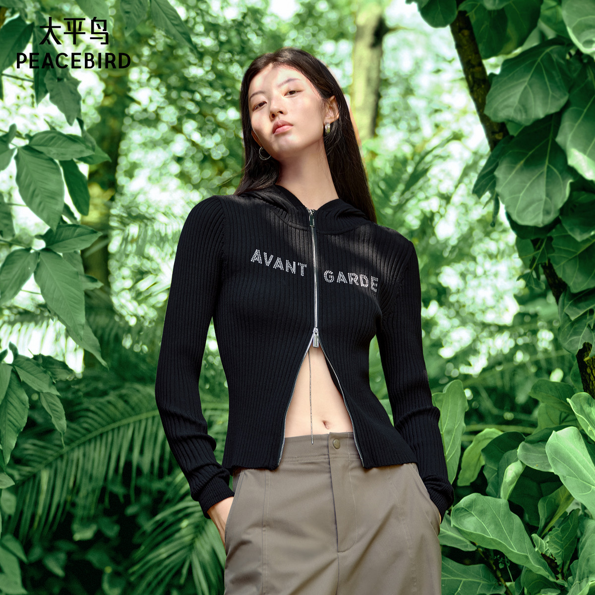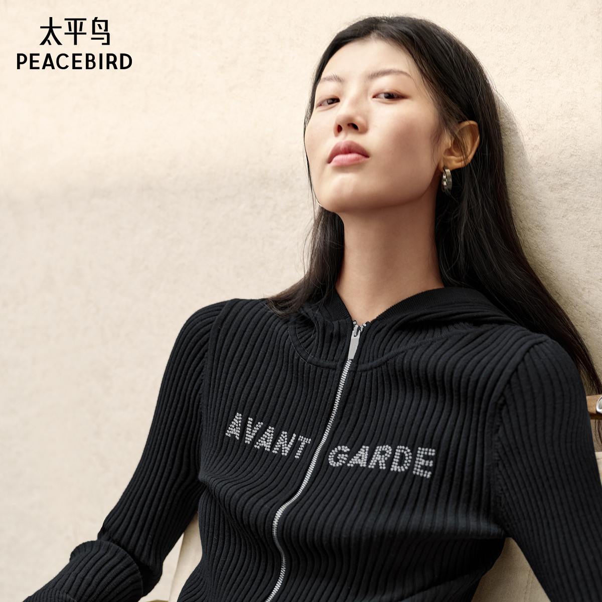 太平鸟2025年新款包芯纱连帽毛衣重口绣花精致打底开衫A3EDF1223