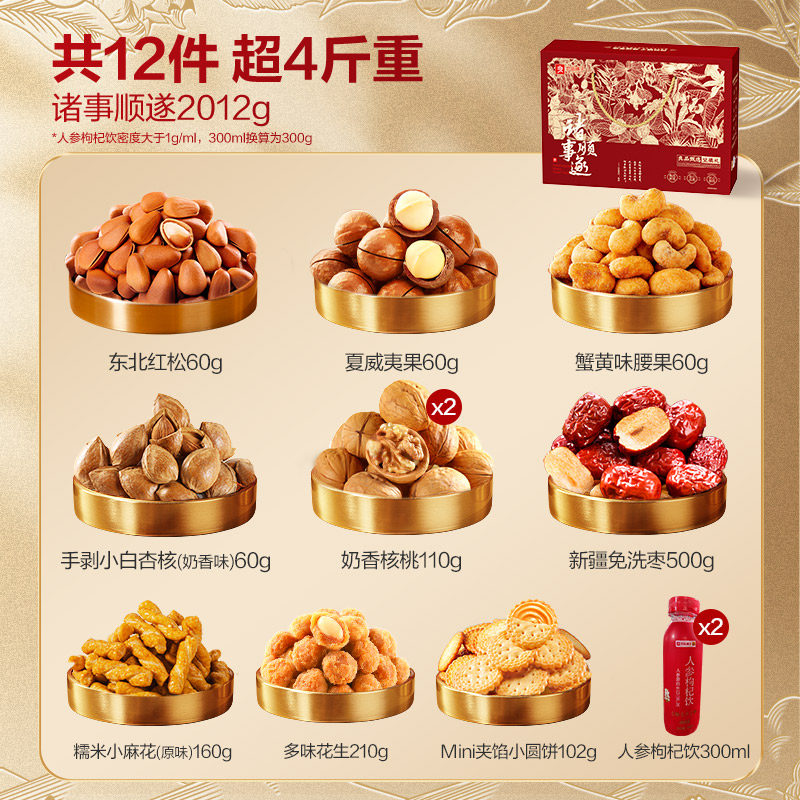 三只松鼠瑞红款13袋/2011g年货坚果礼盒送长辈健康零食大礼包送礼