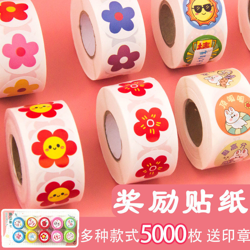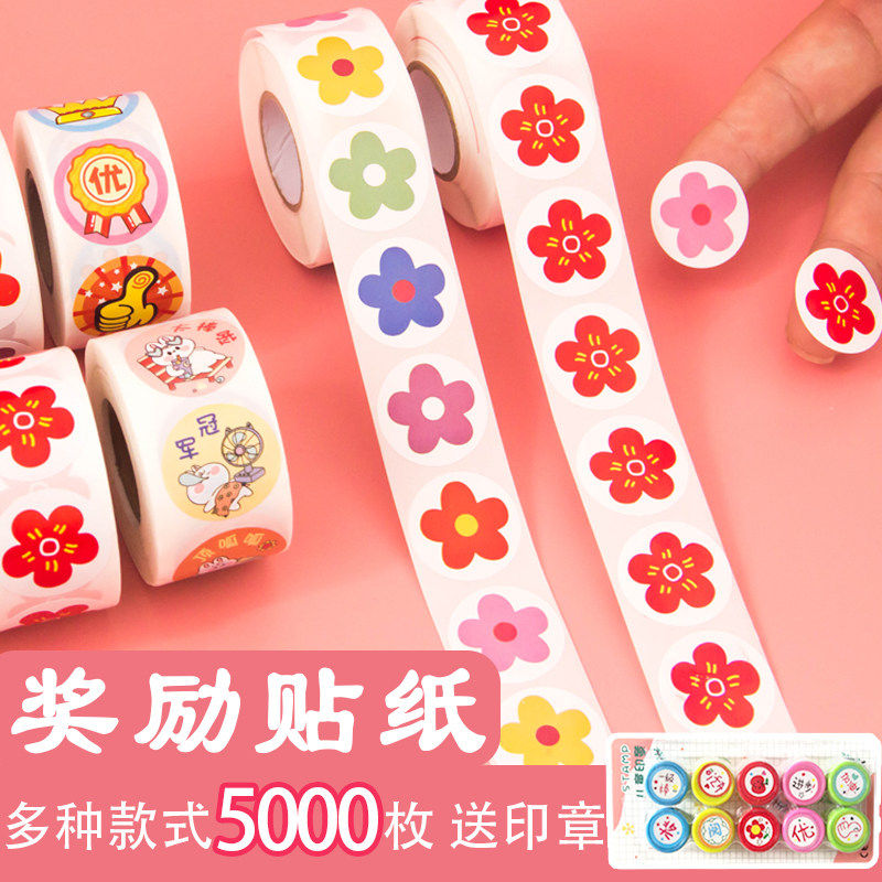 小红花奖励贴纸儿童画纸封口纸小学生教师表扬鼓励奖励贴自律幼儿园小女孩可爱动物卡通积分不干胶标签手账贴