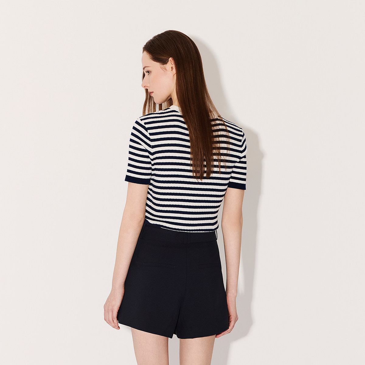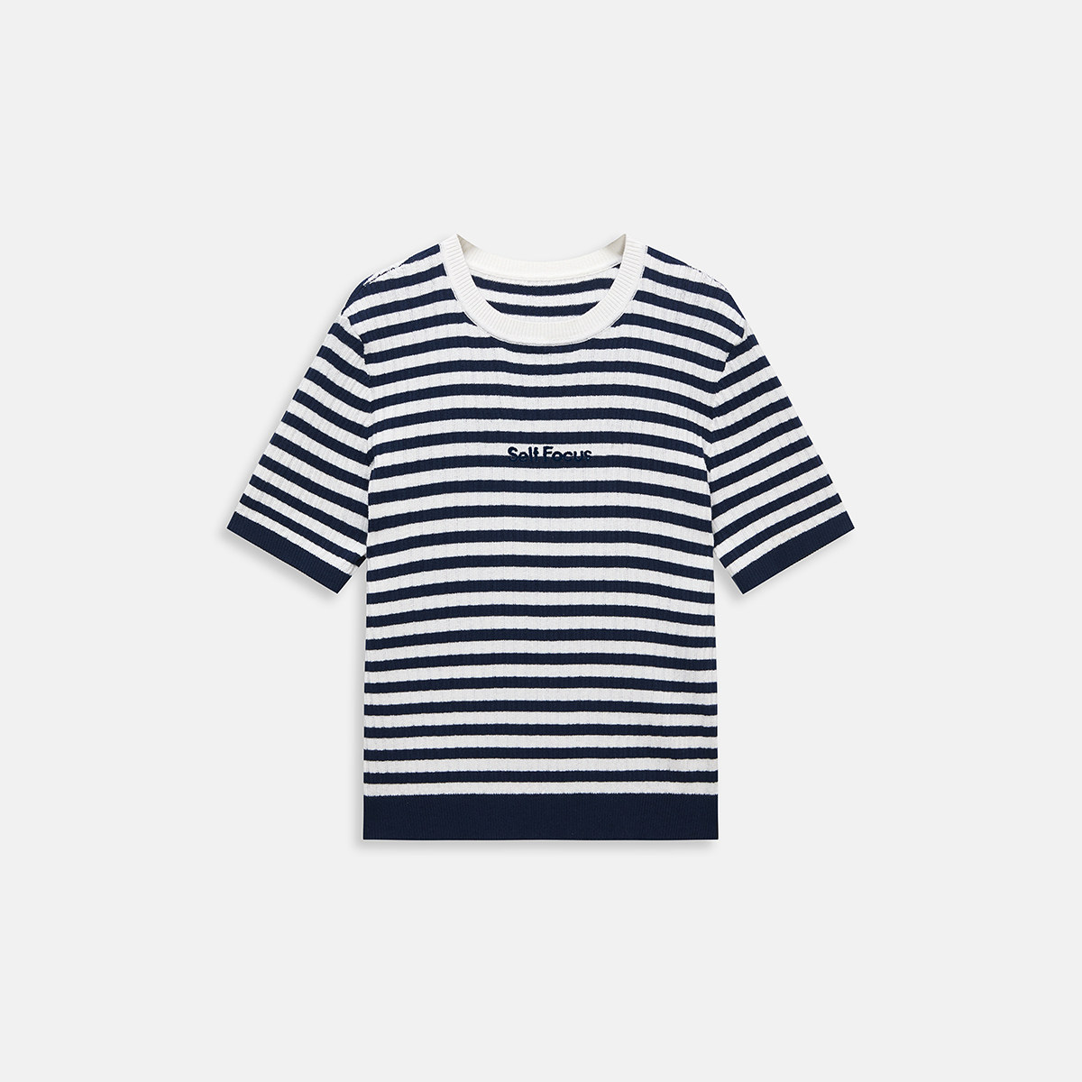 【新品】OCHIRLY欧时力 针织衫2026春夏撞色条纹刺绣短袖空调衫