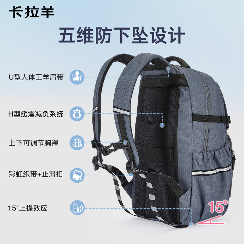【26年新品】卡拉羊初高中学生减负书包大容量多功能户外旅行运动休闲双肩包