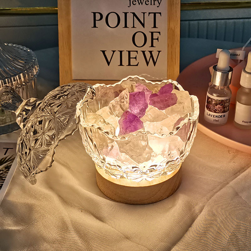 创意无火香薰精油扩香石居家玻璃杯女生宿舍氛围夜灯香氛摆件晶石