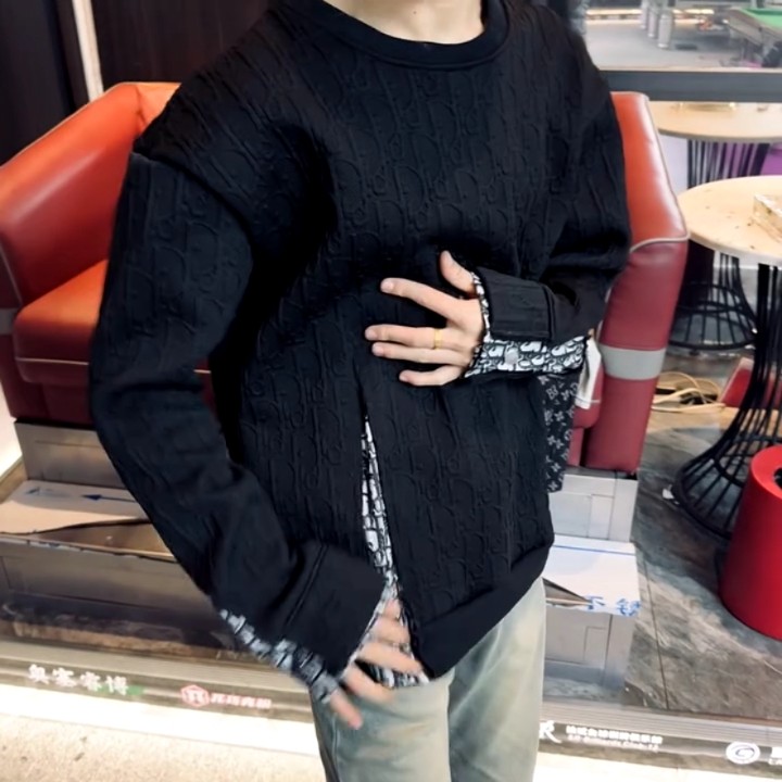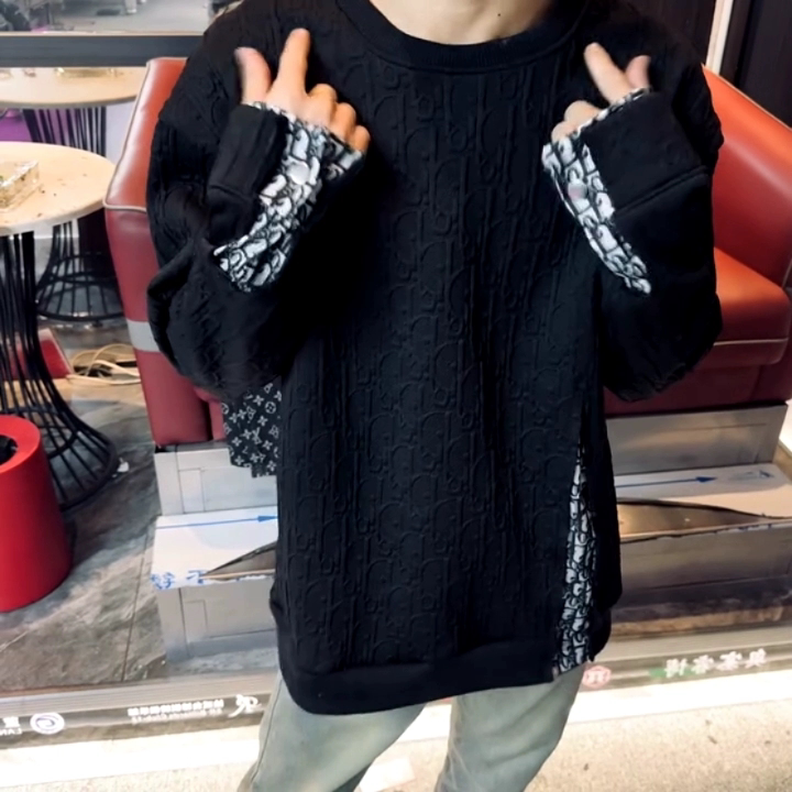 2025秋冬爆款卫衣套头男女同款休闲百搭圆领打底拼接长袖百搭上衣