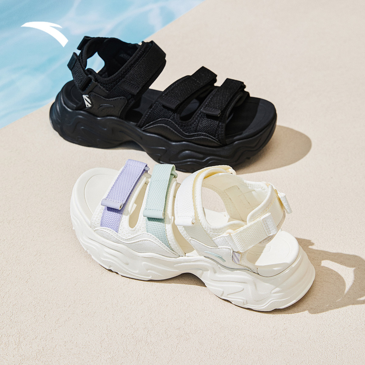 安踏星光丨运动凉鞋女款轻便透气2026年居家魔术贴耐磨外穿沙滩鞋