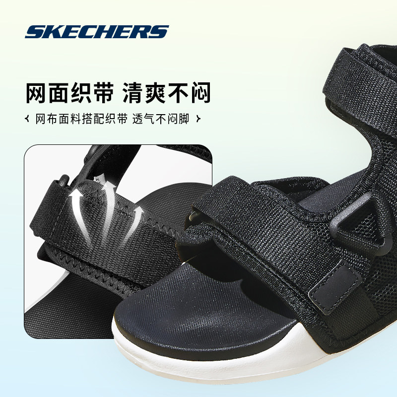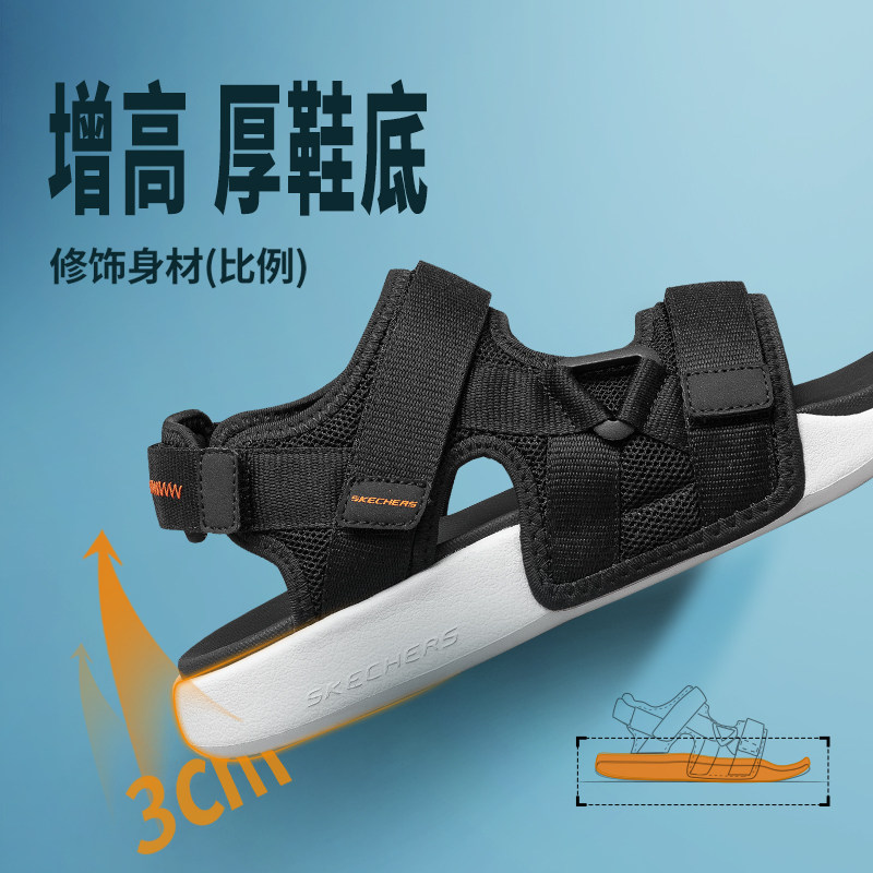 斯凯奇凉鞋厚底男士运动沙滩鞋魔术贴轻便鞋户外穿耐磨拖鞋