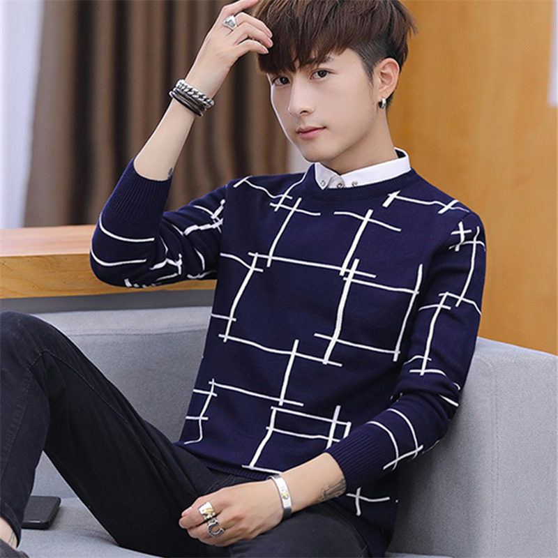 红蜻蜓男士假两件毛衣加绒加厚冬季新款休闲保暖爸爸装针织打底衫