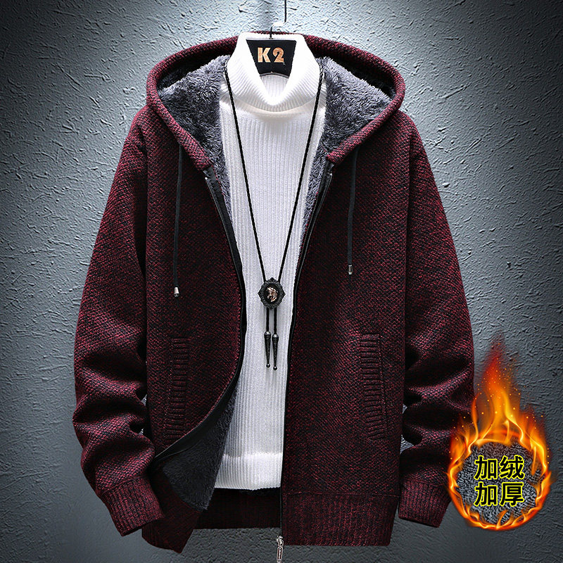 冬季保暖内衣中老年男人加绒加厚针织衫羊羔绒毛衣开衫爸爸装外套