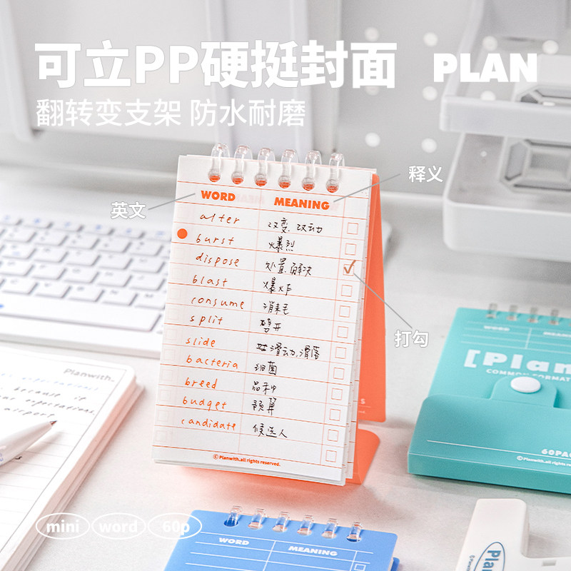 Planwith英语单词本便携式可立记忆本学生考研背日语韩语口袋小本