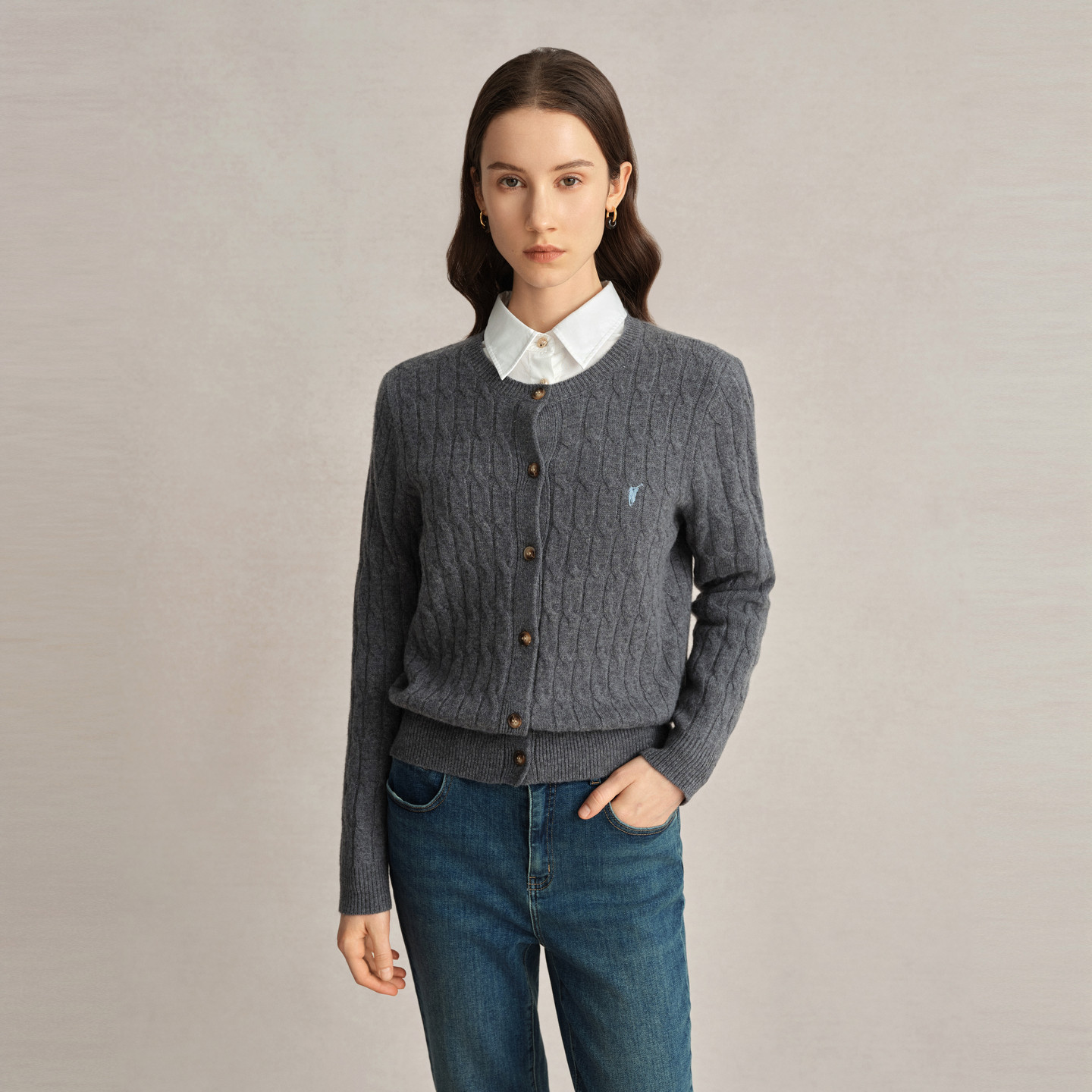 鄂尔多斯市断码羊绒开衫女春秋新款宽松毛衣外套翻领针织羊毛衫