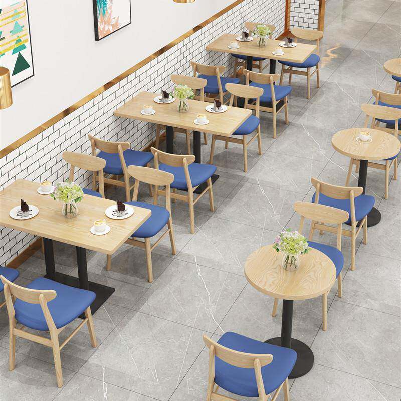 员工食堂餐桌椅奶茶店实木桌椅餐饮美食街快餐店桌椅卡座沙发组合