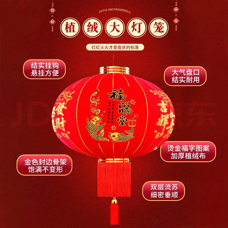 新年植绒小灯笼2026户外庭院子红宫灯春节过年装饰品年味场景布置