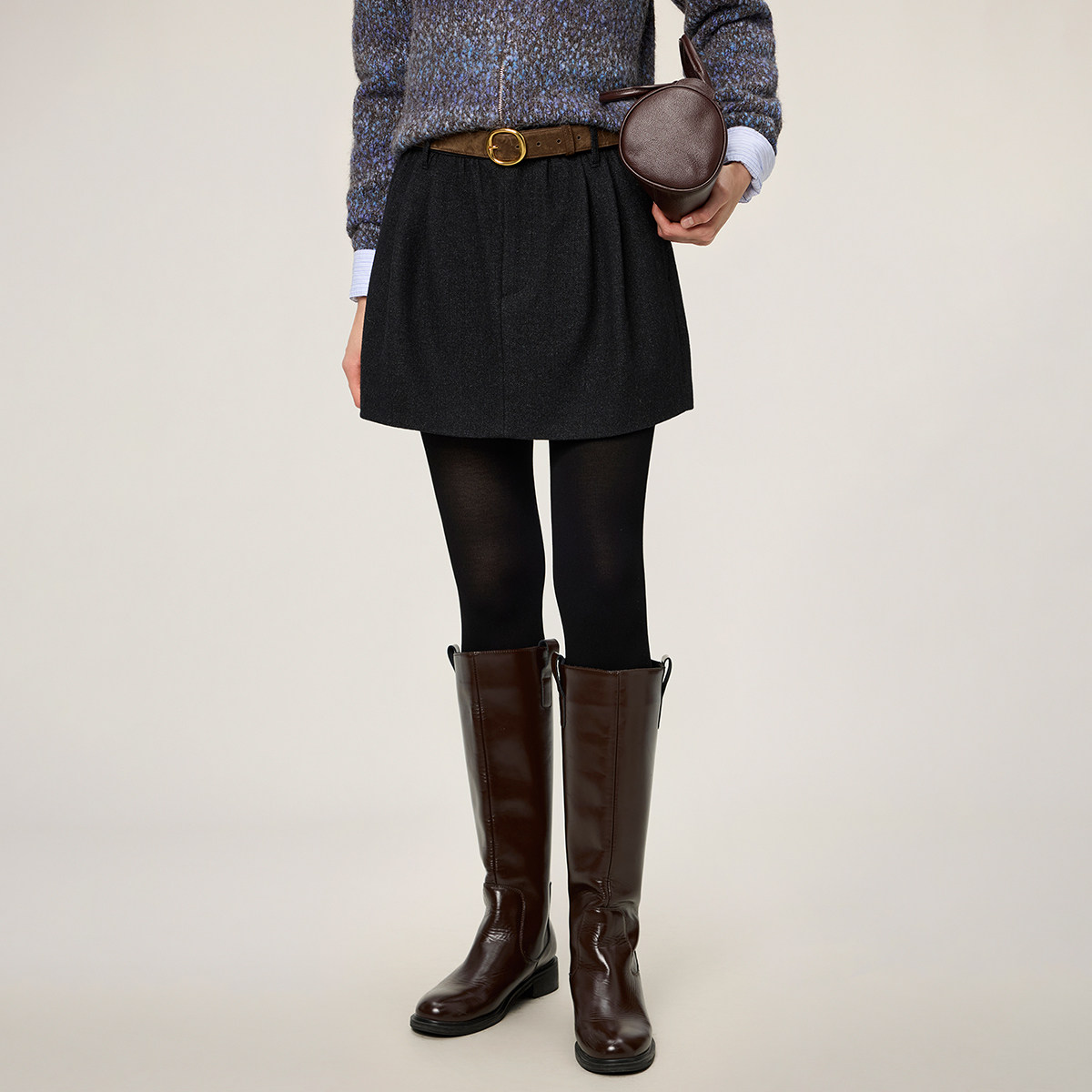 【新品】OCHIRLY欧时力 羊毛呢收褶a字半身裙短裙气质显瘦2026春