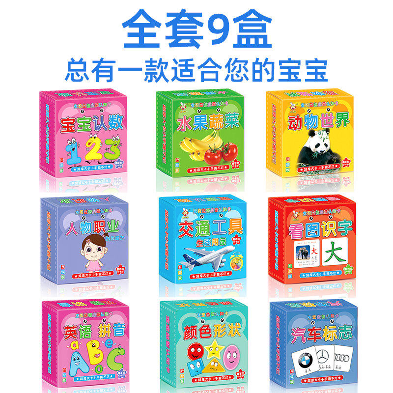 宝宝早教认知卡片看图识物动物水果卡婴幼儿儿童启蒙识图玩具识字