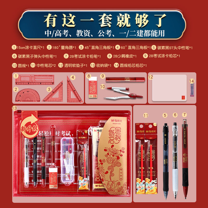 晨光透明文件袋a5考试专用袋子教资文具袋中考高考2b铅笔自动涂卡笔套装垫板工具包拉链笔袋公务员答题卡学生