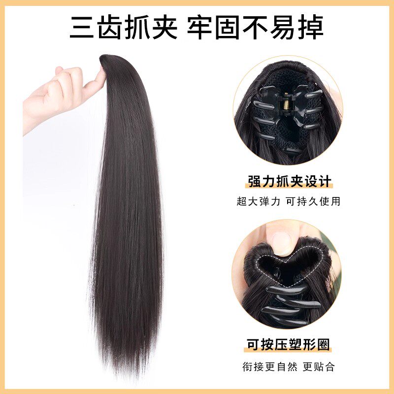 马尾假发女长发真人发抓夹高自然长直发高扎轻薄假马尾辫子发型