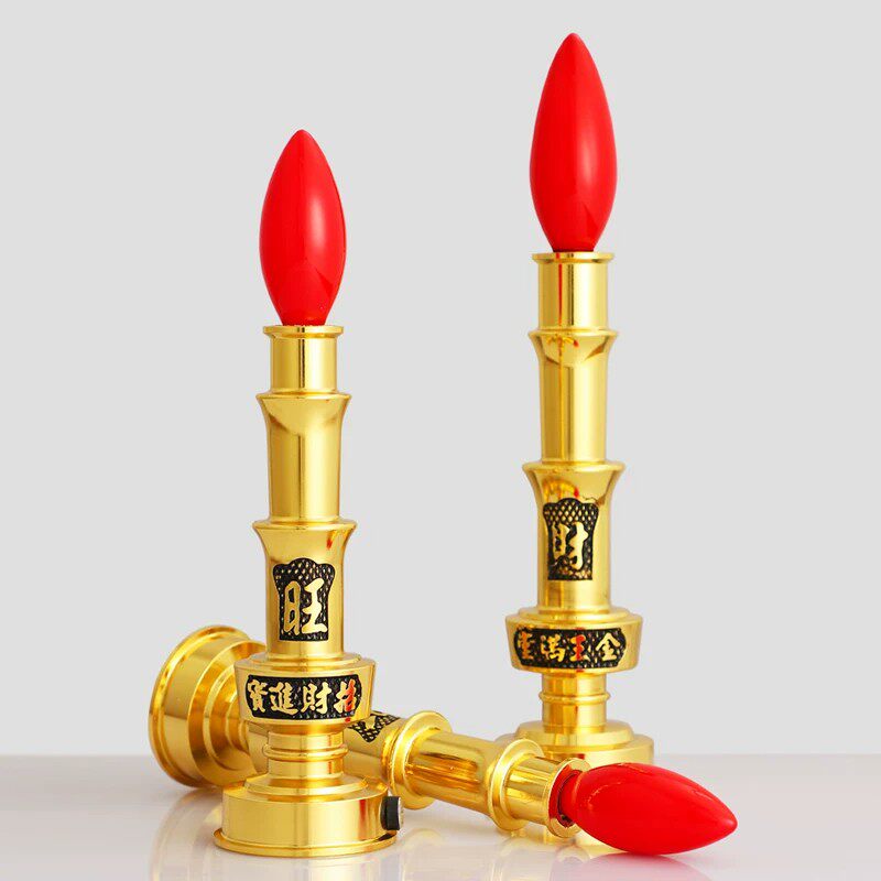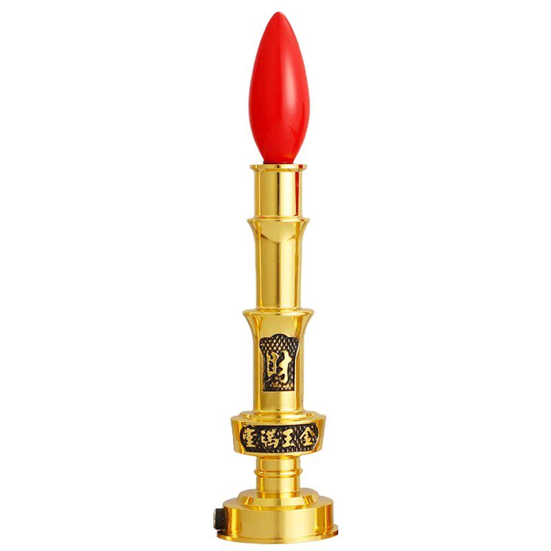 财神爷招财灯纯黄铜电子蜡烛灯烛台家用供奉佛神台专用灯插电灯泡