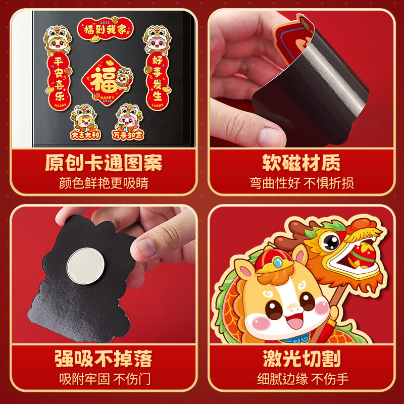 2026冰箱贴磁吸个性创意马年新款新年装饰品氛围挂件贴纸春节磁贴