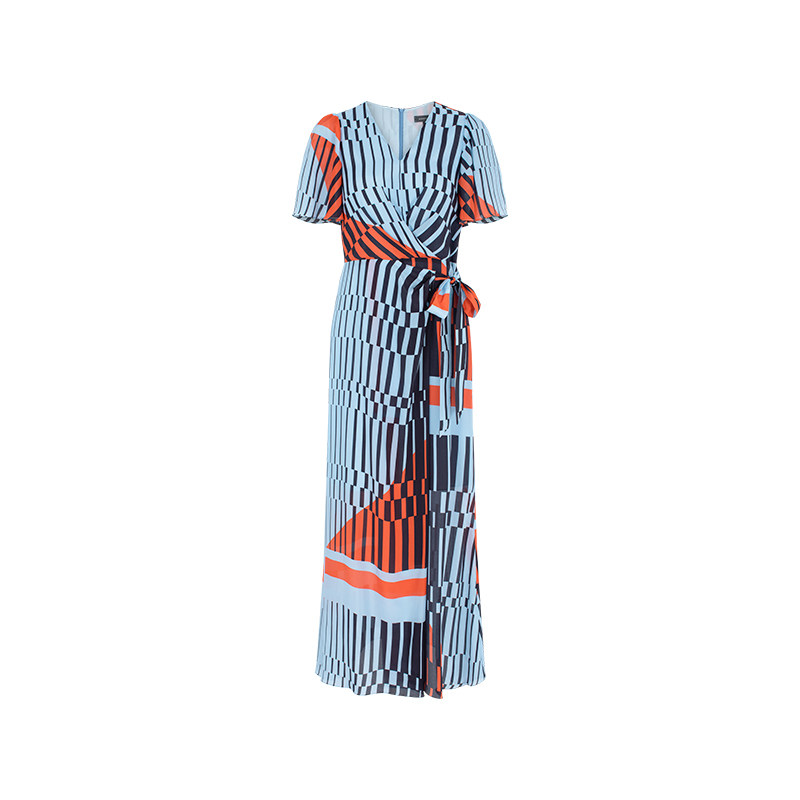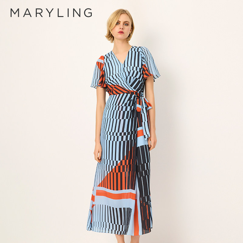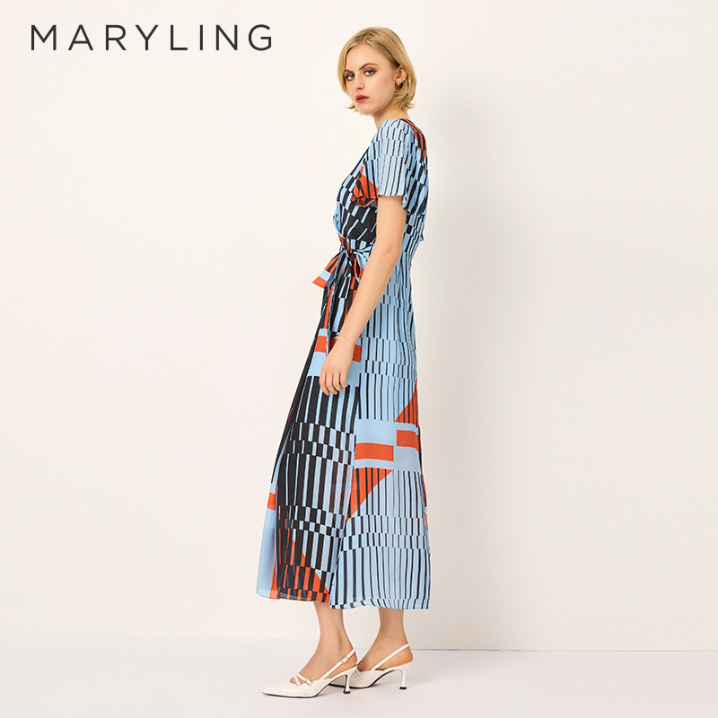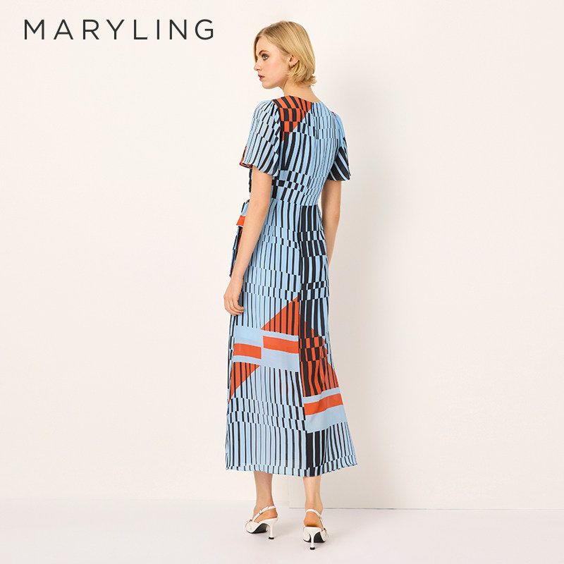 MARYLING玛俪琳2025夏季新品V领不对称腰节真丝茶歇裙A1FCW63140