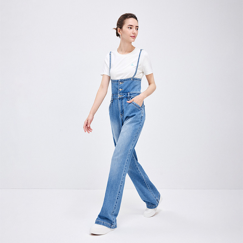 [天丝]Navigare意大利小帆船休闲背带牛仔裤女连体裤直筒裤子