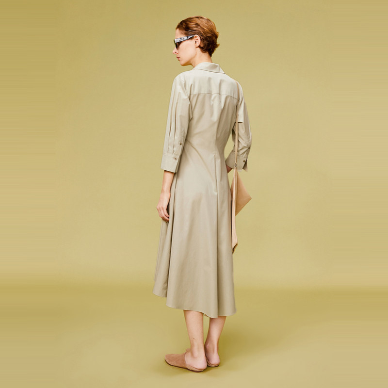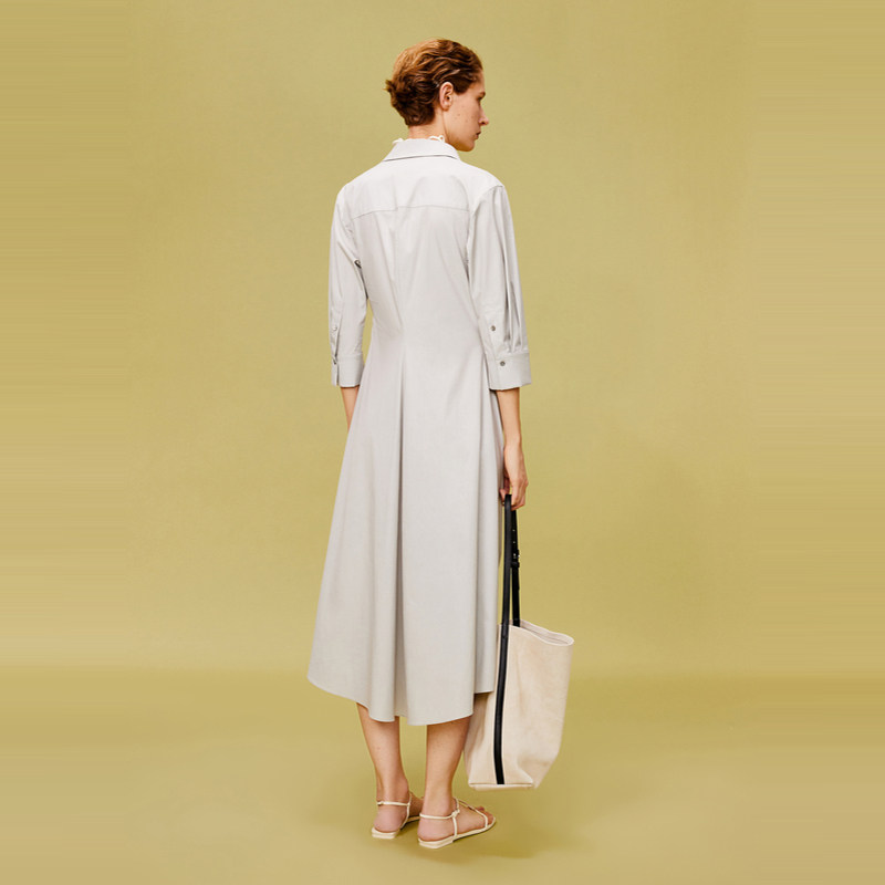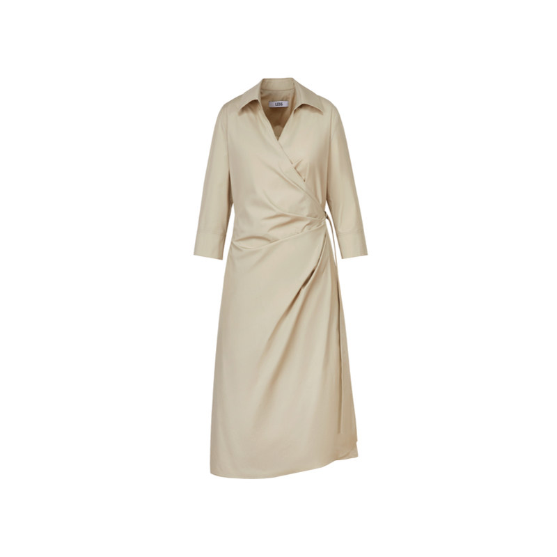 LESS棉质系带连衣裙法式气质通勤收腰显瘦长款衬衫裙子2O3G11660