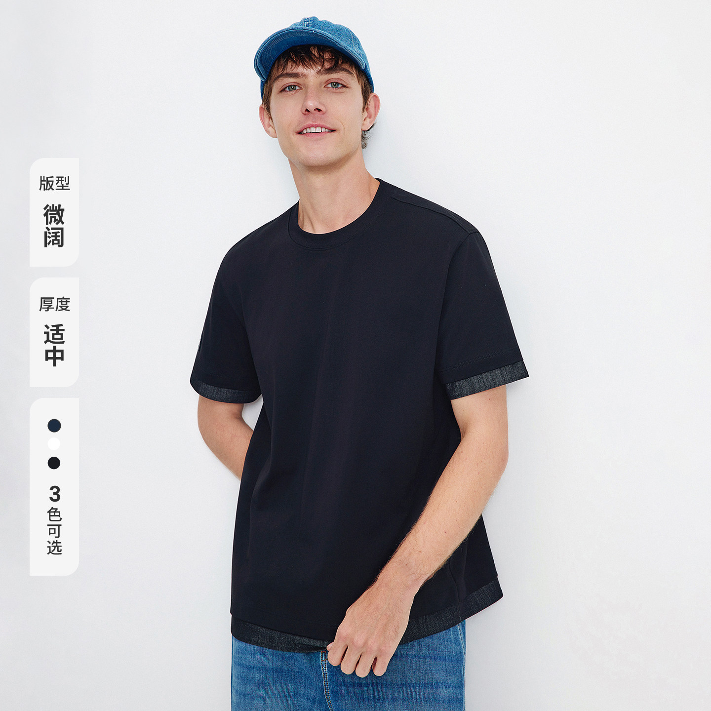 【春上新系列凉感】杰克琼斯男装新款纯色打底衫刺绣短袖男款T恤