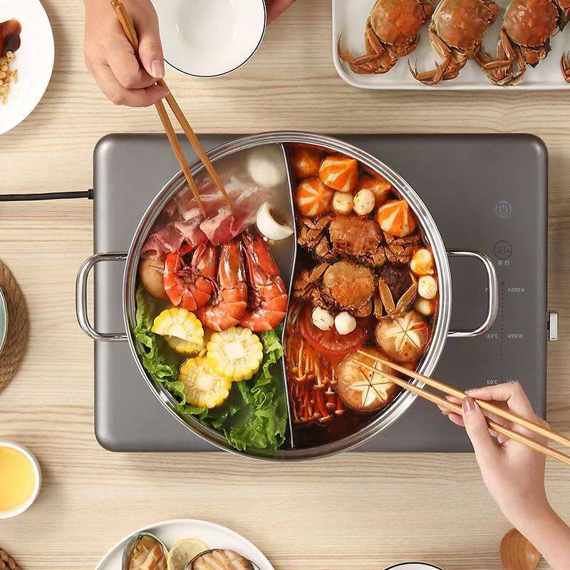 加厚不锈钢鸳鸯锅火锅家用吃火锅锅具电磁炉燃气灶专用汤锅火锅盆