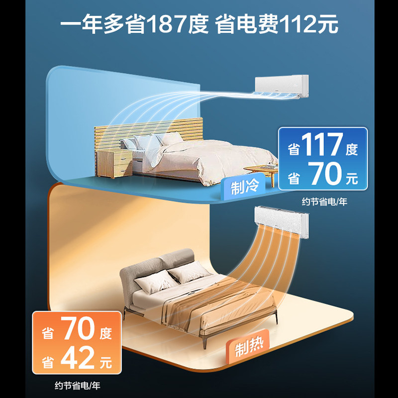 美的空调酷省电二代大1.5匹1匹一级能效变频冷暖家用挂机官方正品