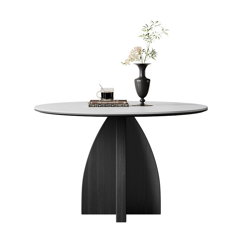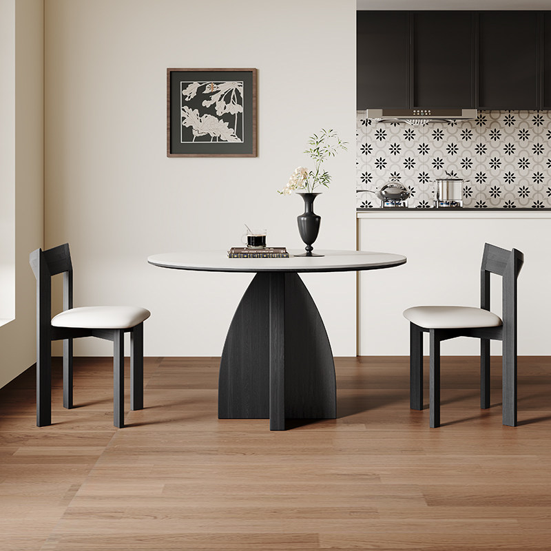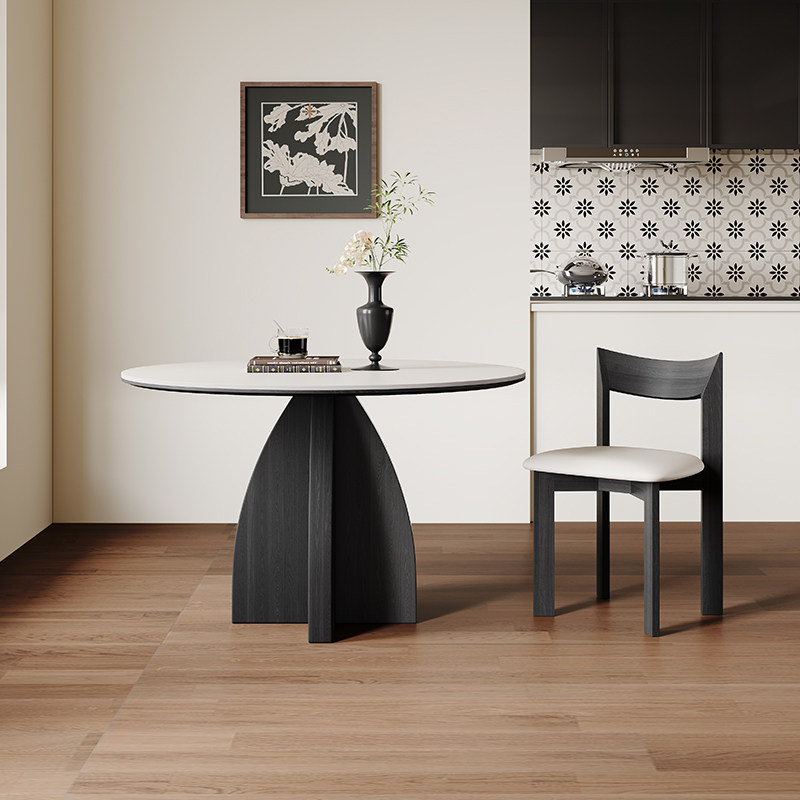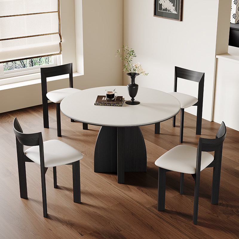 复古实木岩板餐桌2025新款小户型圆形洽谈桌意式极简纯白岩板圆桌