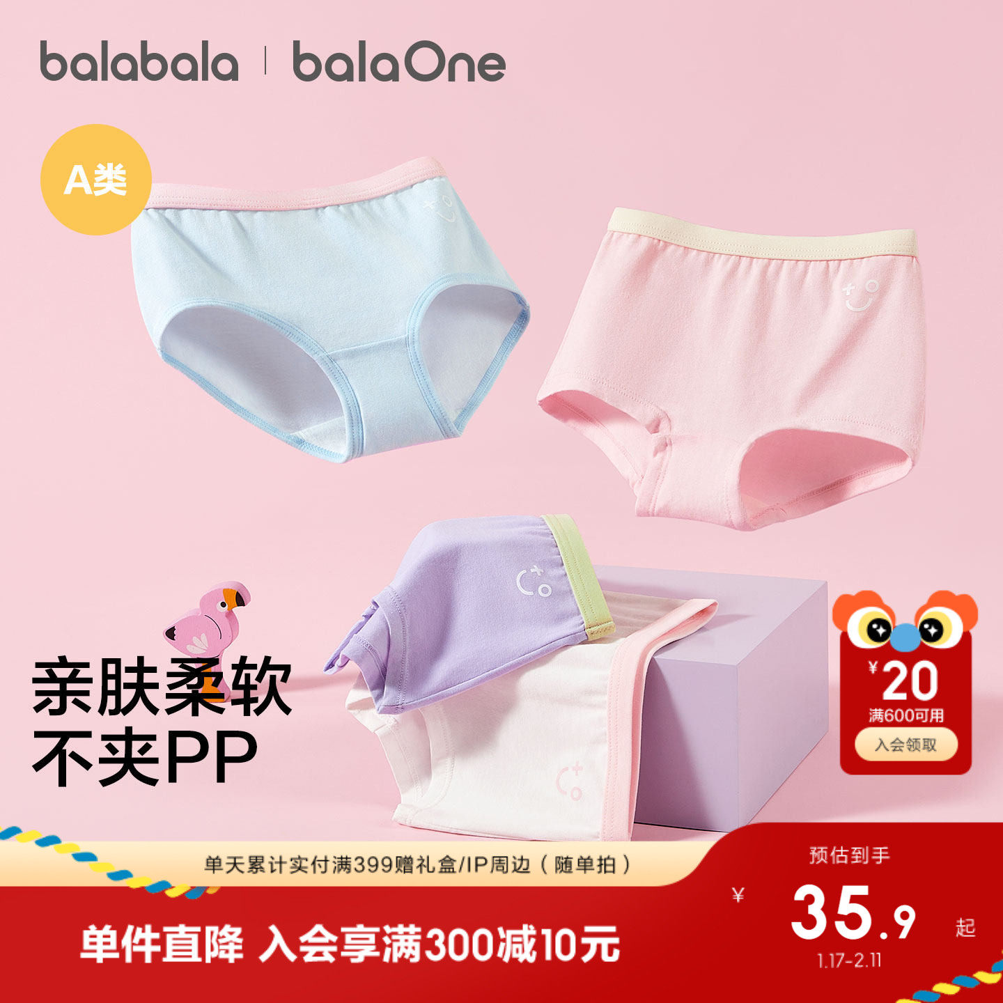 巴拉巴拉女童内裤纯棉儿童平角短裤小童大童三角短裤子亲肤三条装