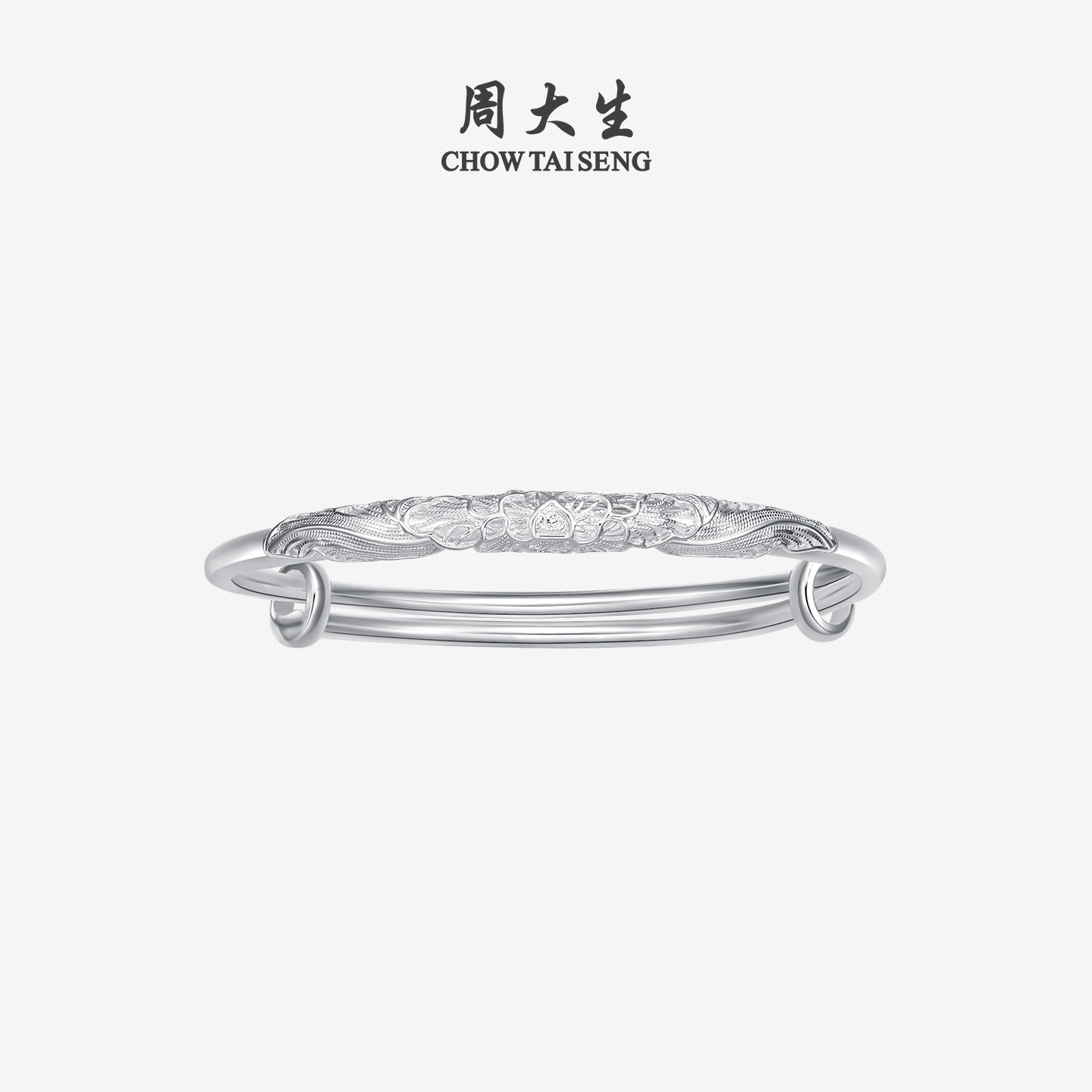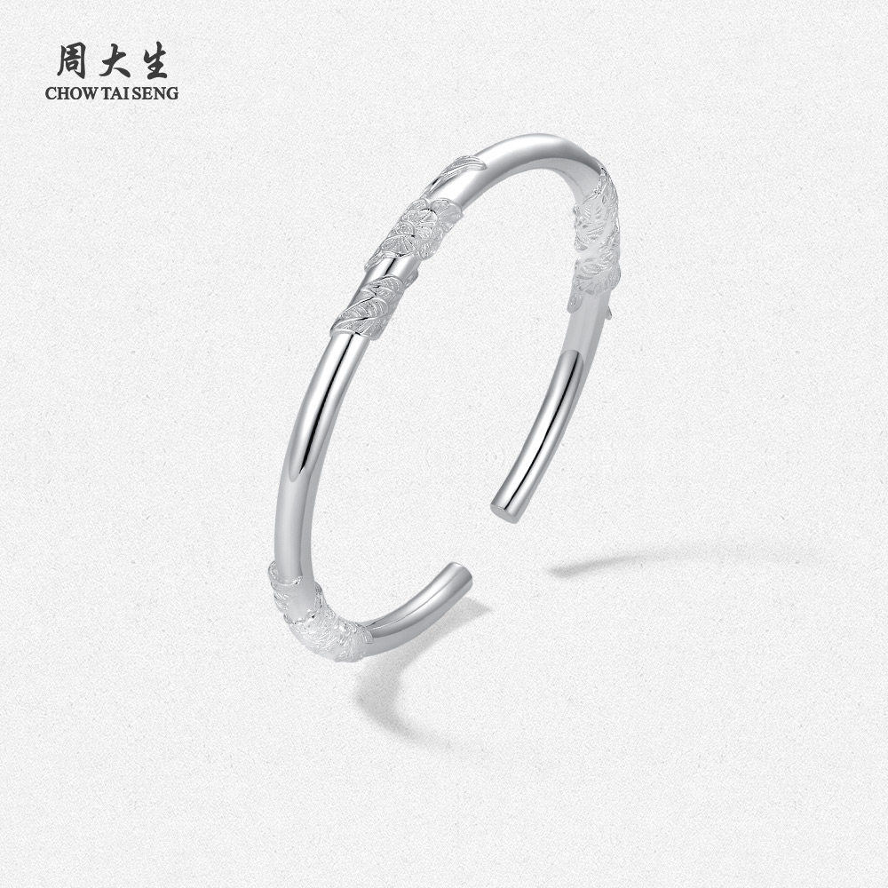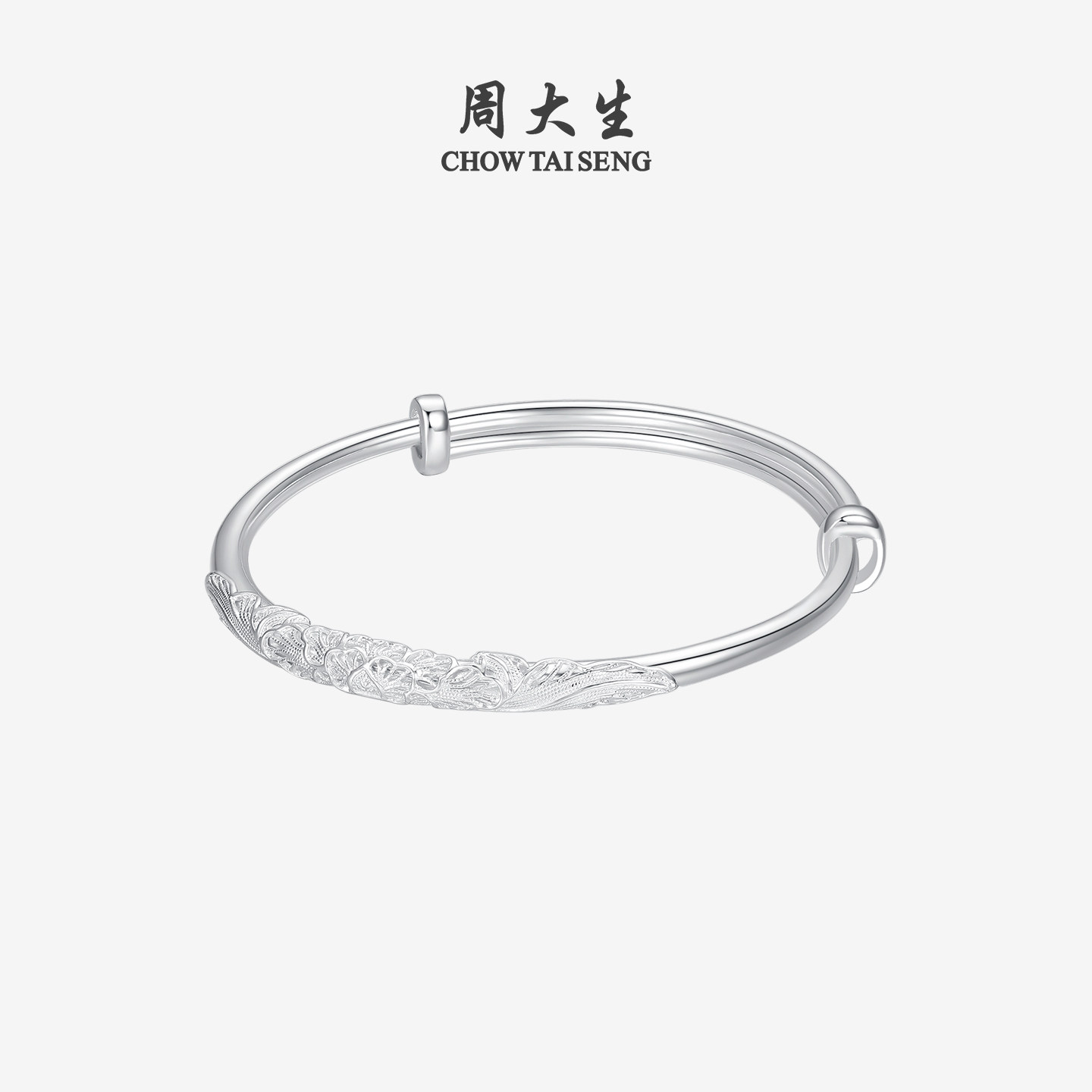 周大生足银S990手镯女新款繁花似锦实心镯子送女朋友礼物送妈妈