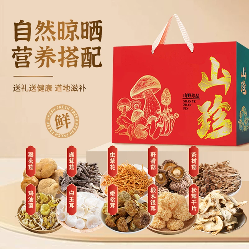 首粮菌菇礼盒山珍迎福礼干菌春节年货干货大礼包食用菌