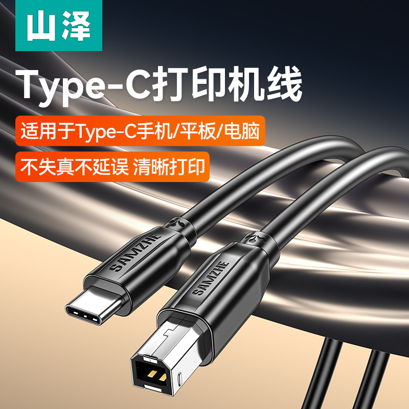 山泽typec手机连打印机线usb转方口电子琴midi连接线适用平板笔记本电脑扫描仪硬盘盒传真机转换器数据线
