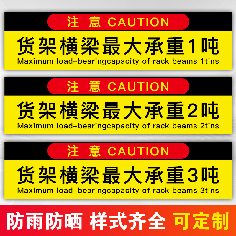 货架承重标识牌磁性标识贴不干胶贴纸限载提示牌车间货架横梁载重平台承重仓库电梯1吨铭牌定制