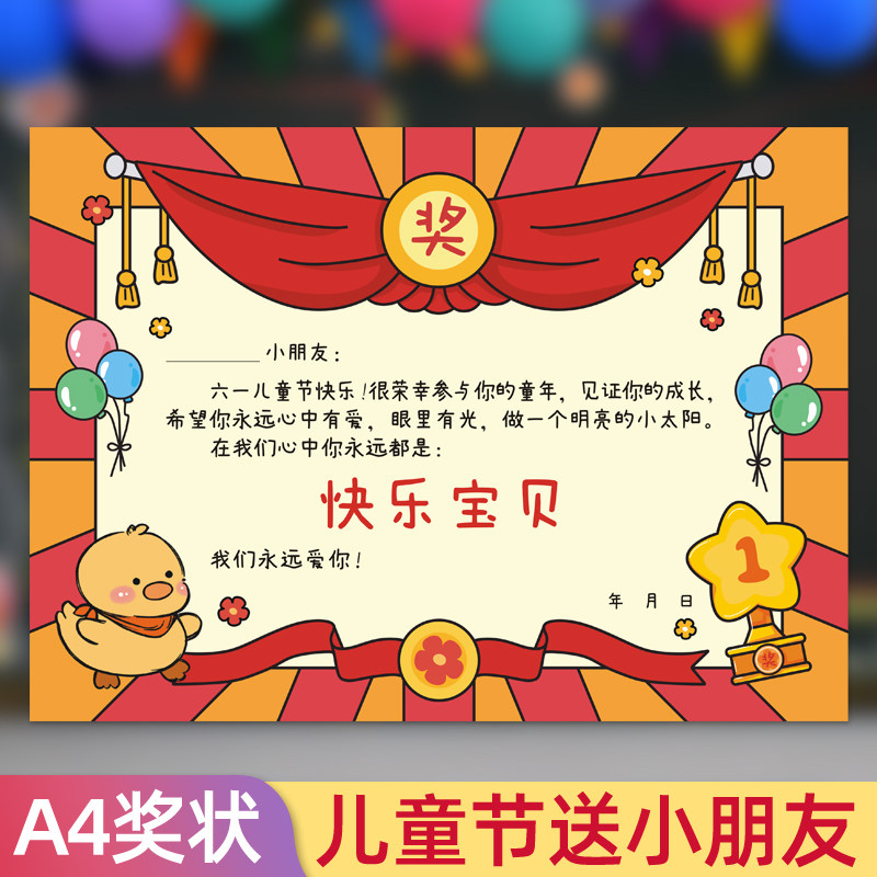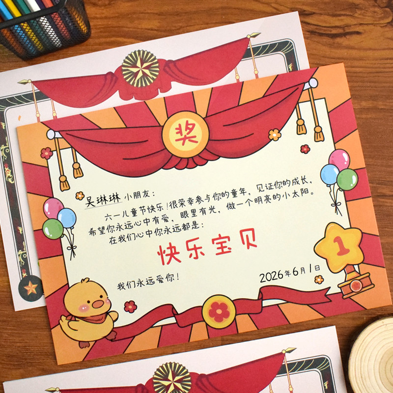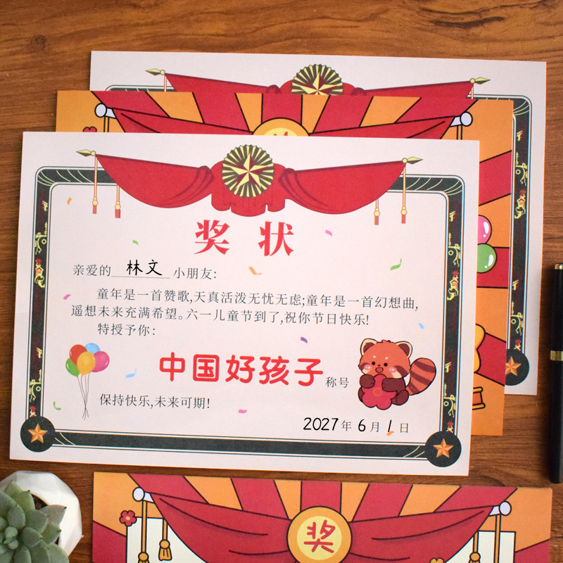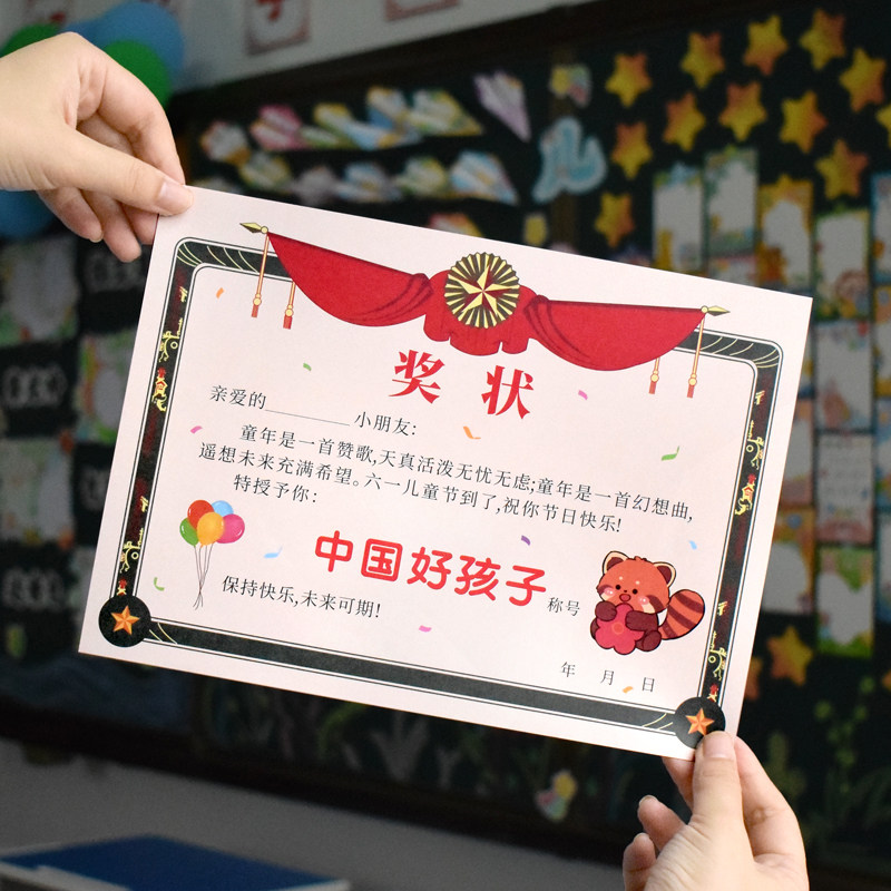 中国好孩子61儿童节快乐奖状纸通用优秀幼儿园小学生用简约创意高级感六一送孩子仪式感祝福语A4荣誉证书礼物