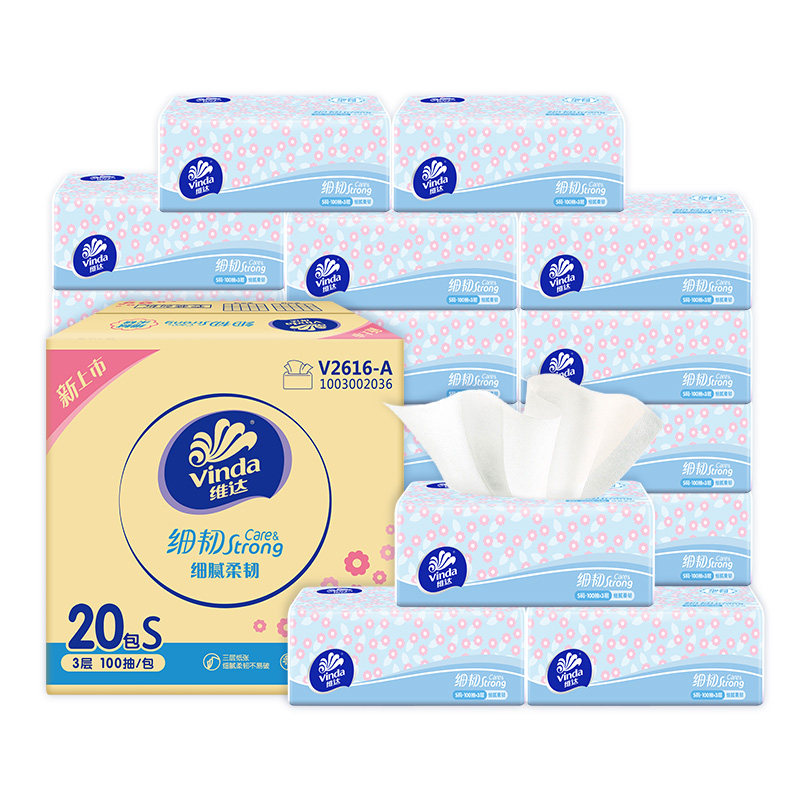 维达细韧抽纸100抽3包家用餐巾纸面巾纸卫生纸巾实惠装加厚不易破
