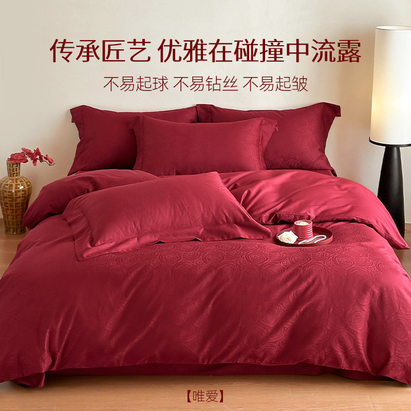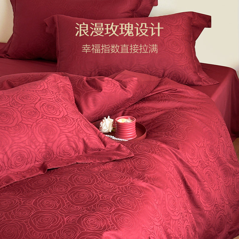高端轻奢新款婚庆四件套结婚床上用品纯棉床单被罩婚礼被套