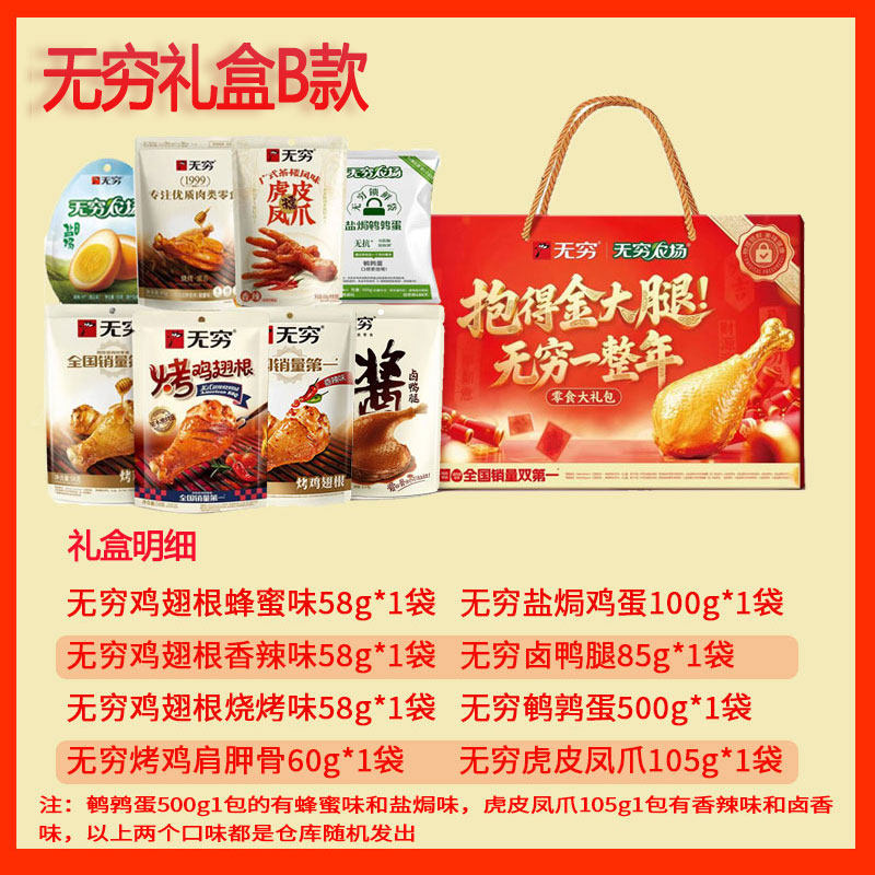 无穷福气零食大礼包卤味肉类熟食盐焗鸡蛋烤鸡腿鸡翅根年货节送礼
