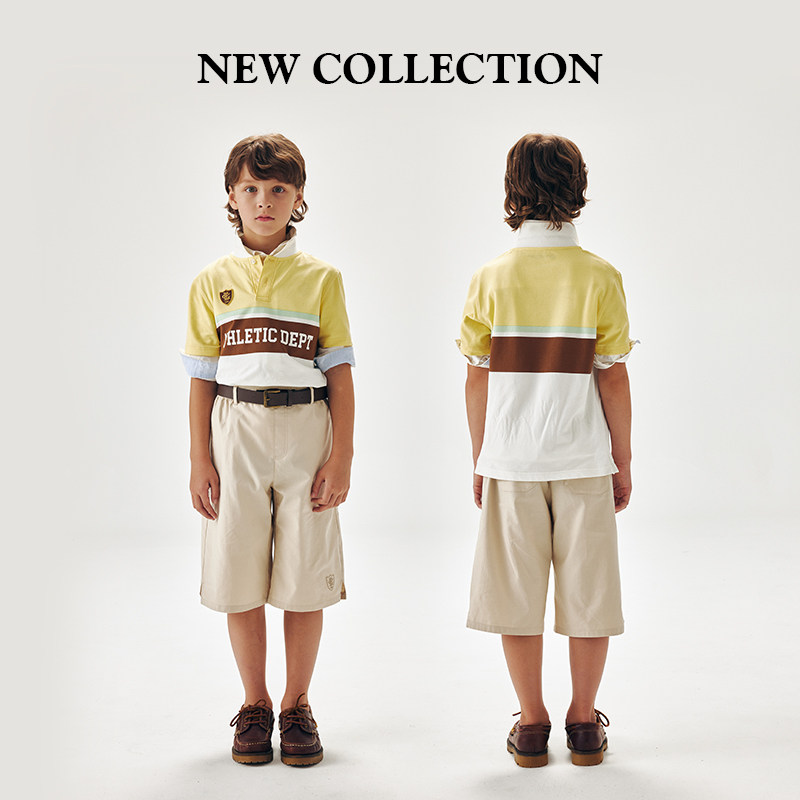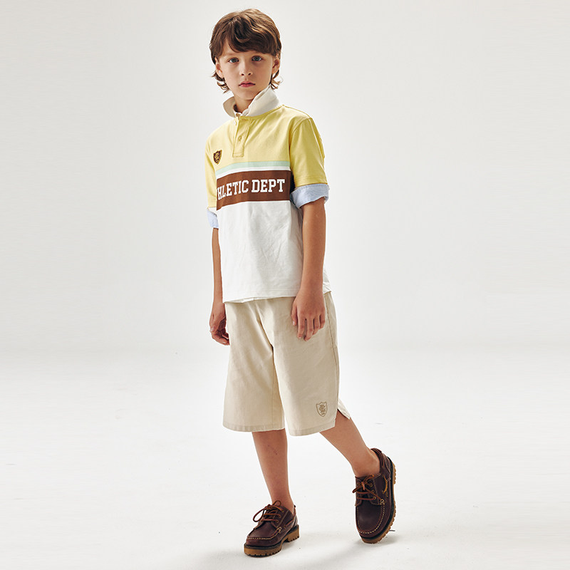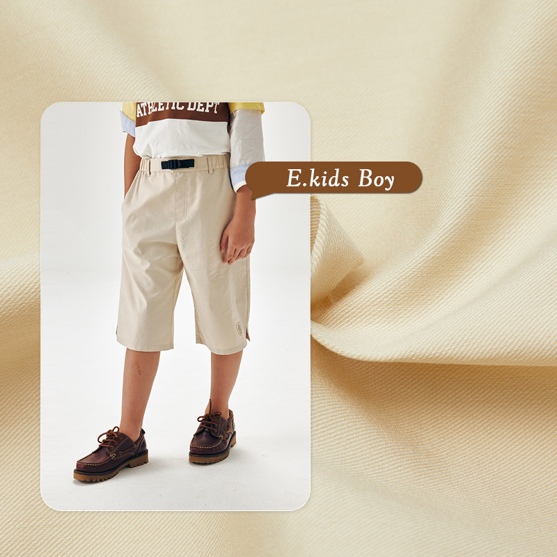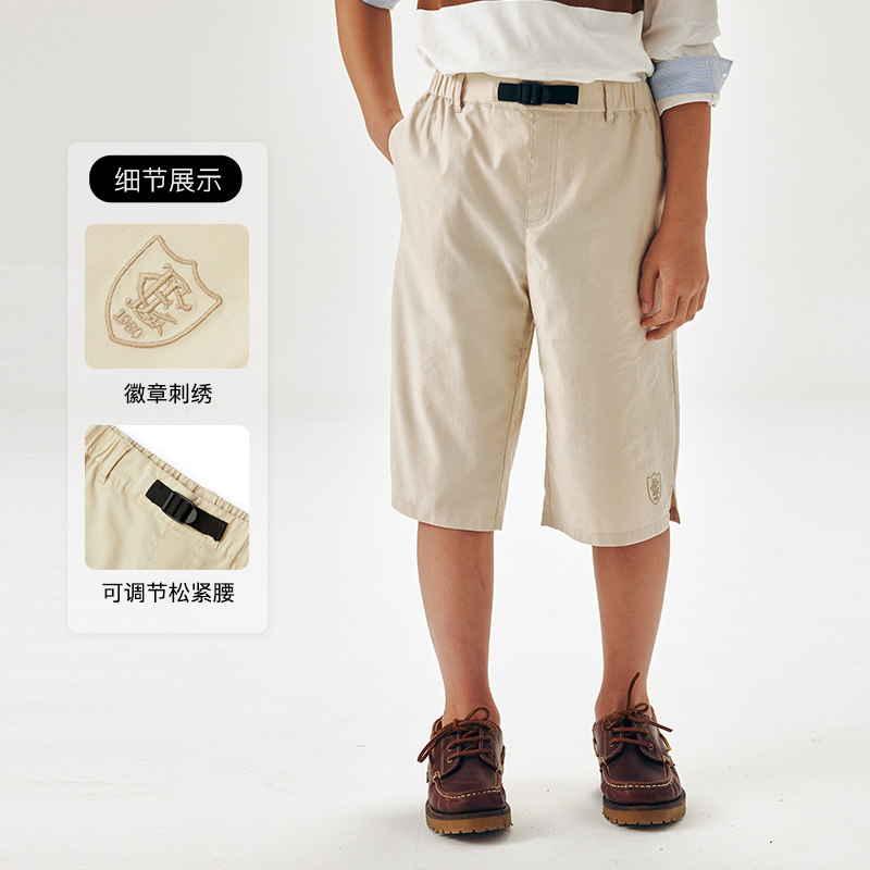 eland kids衣恋童装男童七分裤夏季复古刺绣松紧腰插袋休闲短裤子